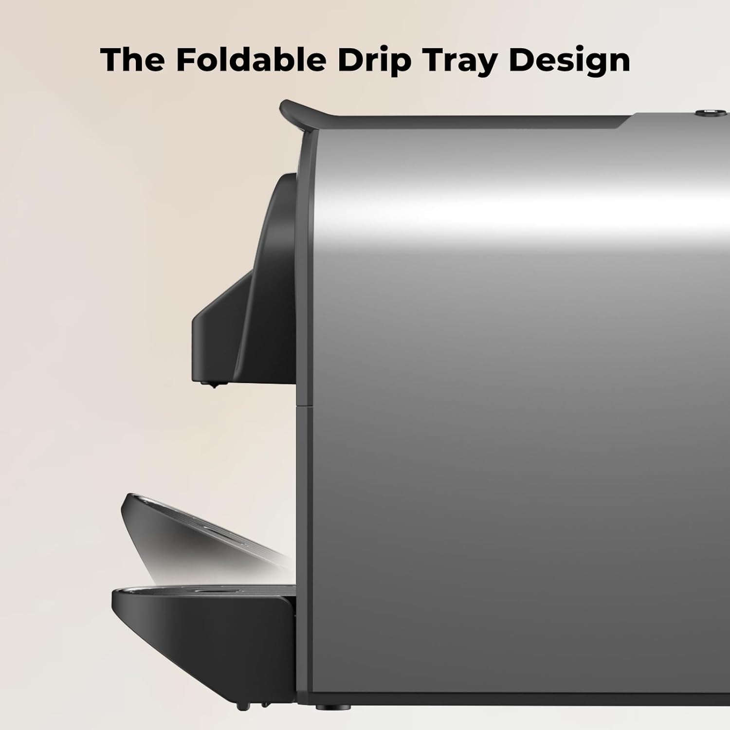 - Simple Operation, Hassle-Free Cleanup: Just lift lid, insert a pod, press lid down and select brewing mode - espresso with rich crema is ready in 20s. The foldable drip tray for the different cup's height. Detechable water tank, drip tray and capsule container for easy cleaning