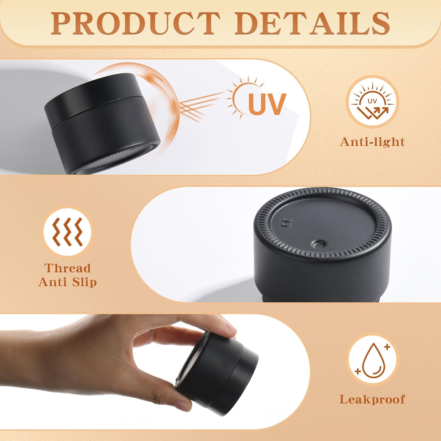 - 【Premium Airtight Glass Jars】 Crafted with thick borosilicate glass and black phenolic lids, these jars provide 100% leakproof protection. Inner silicone liners block air/moisture, ideal for light-sensitive CBD creams, organic balms, and essential oils.