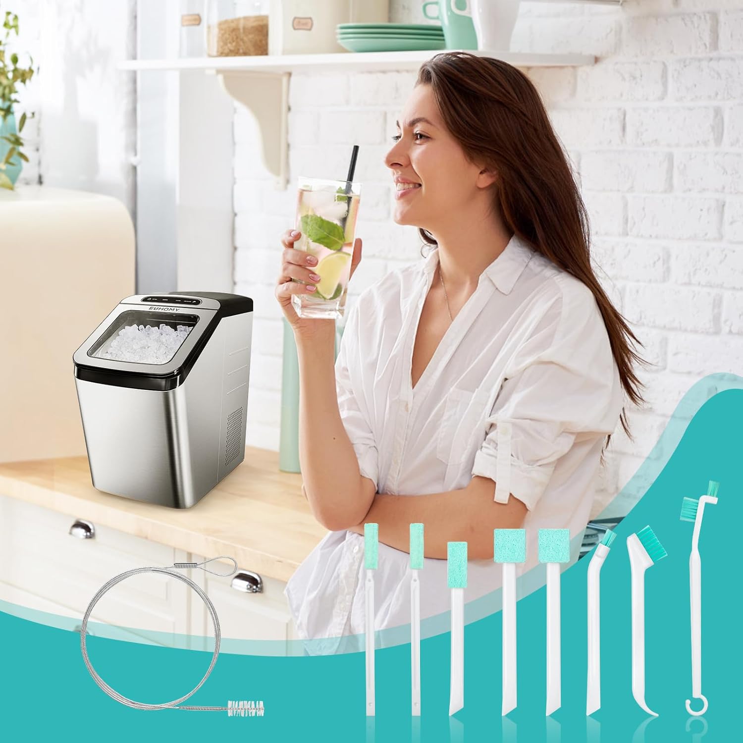 TUZAZO Ice Machine Cleaner Brush Kits, 10 PCS Ice Maker Cleaning Tools - 2PCS Long Drain Pipe Brushes and 8 PCS Crevice Cleaning Brushes