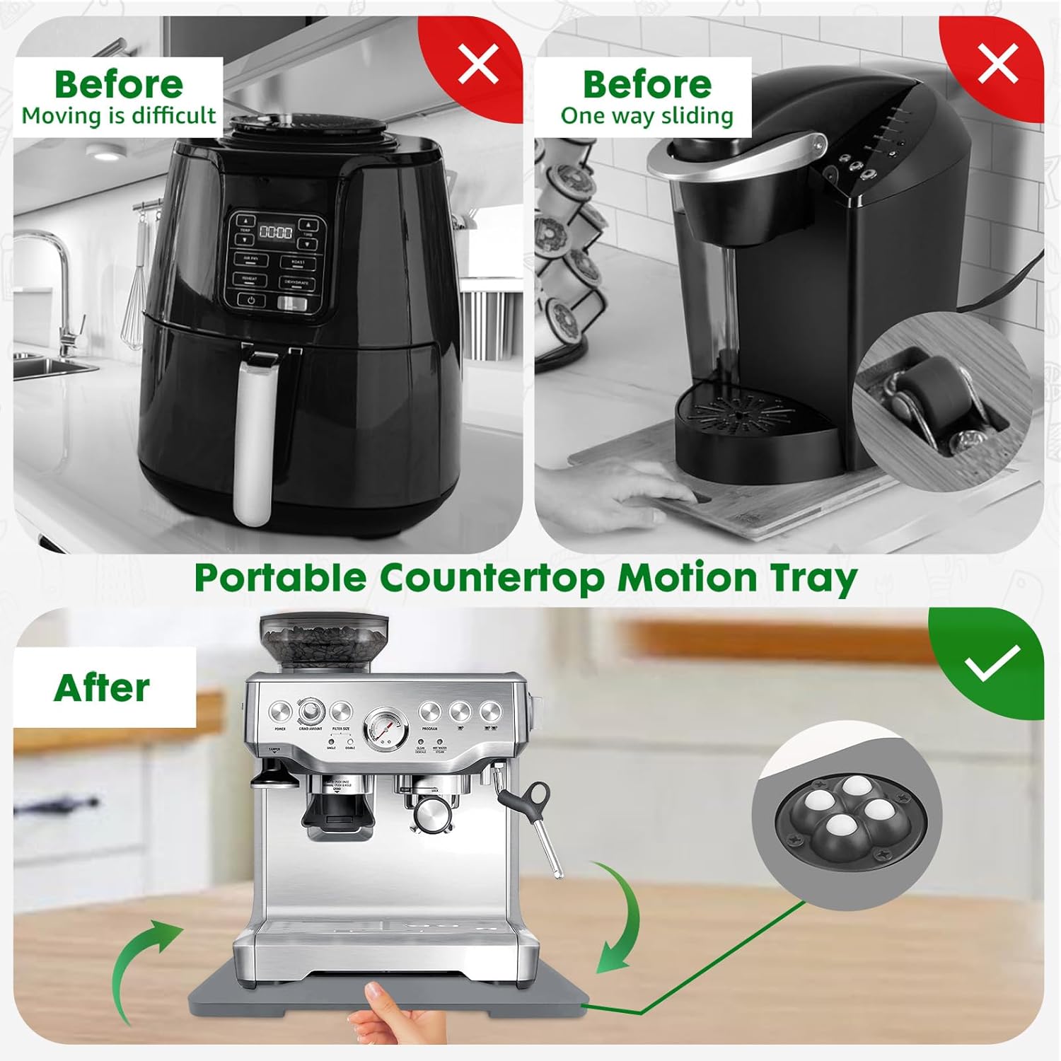 - 【360° Countertop Mobility】The appliance slider is equipped with 360° rollers for all-around mobility, making it easy to move various kitchen appliances.