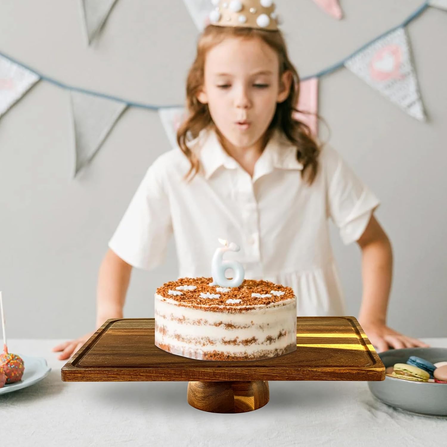 - 【Durable & Stylish Acacia Wood】Cake stand with lid is made from premium acacia wood, resistant to bending and cracking. Sourced from nature, each piece is unique in color and grain.The natural wood grain adds a touch of rustic charm to your kitchen or dining table. Paired with acacia wood cake plate, this cake pedestal stand with cover elevates birthdays,wedding, parties, and dessert tables with its natural wood texture and seamless 2-in-1 design.Note: Wood material is not dishwasher safe.