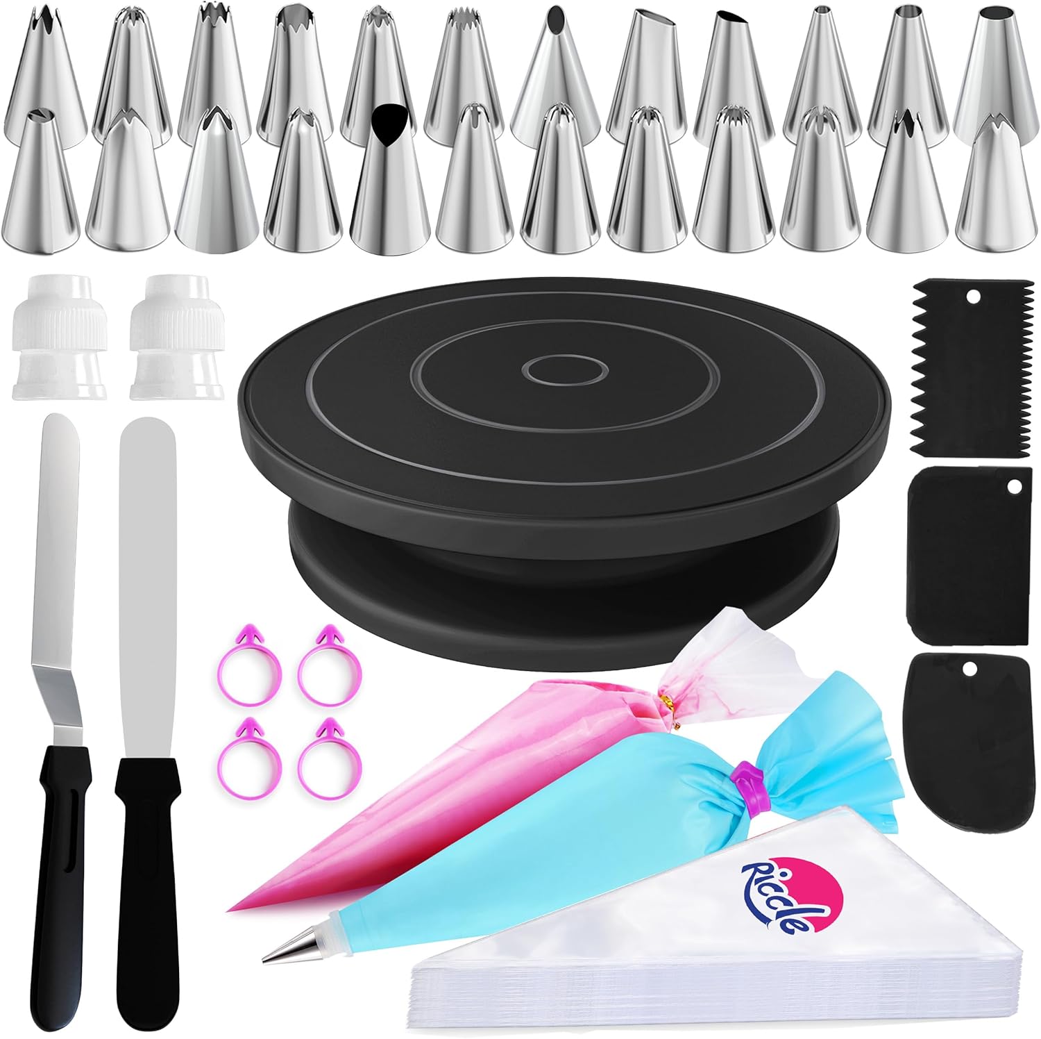 - Professional Cake Decorating Kit: Includes a cake decorating turntable, cake spatula icing smoother, icing scraper, and cake piping kit. Designed for precision and ease, this kit ensures a flawless finish for your cake baking supplies.