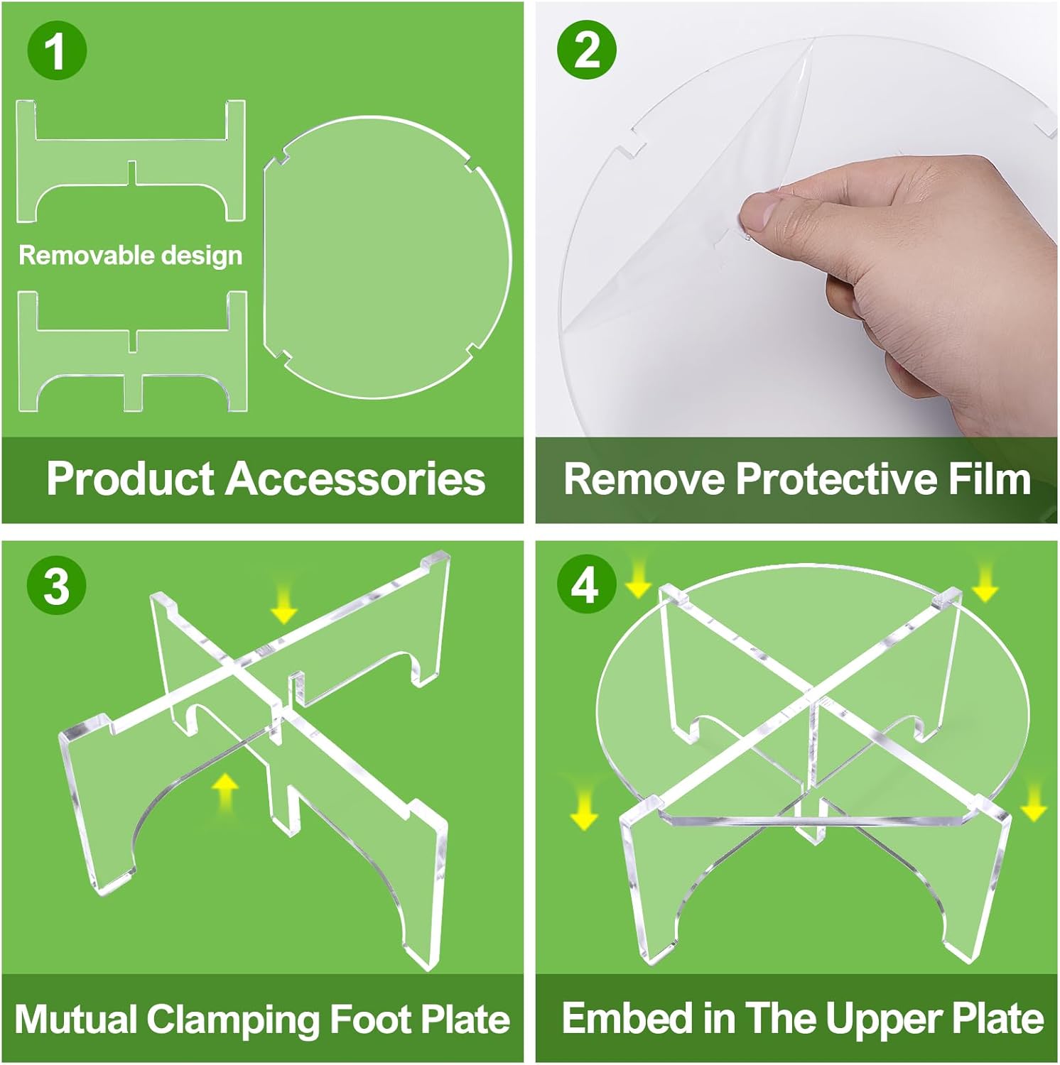 - REMOVE THE PROTECTIVE FILM: The top of each drink holder and the supporting feet are covered with a frosted protective film, please remove the film before use to become clear