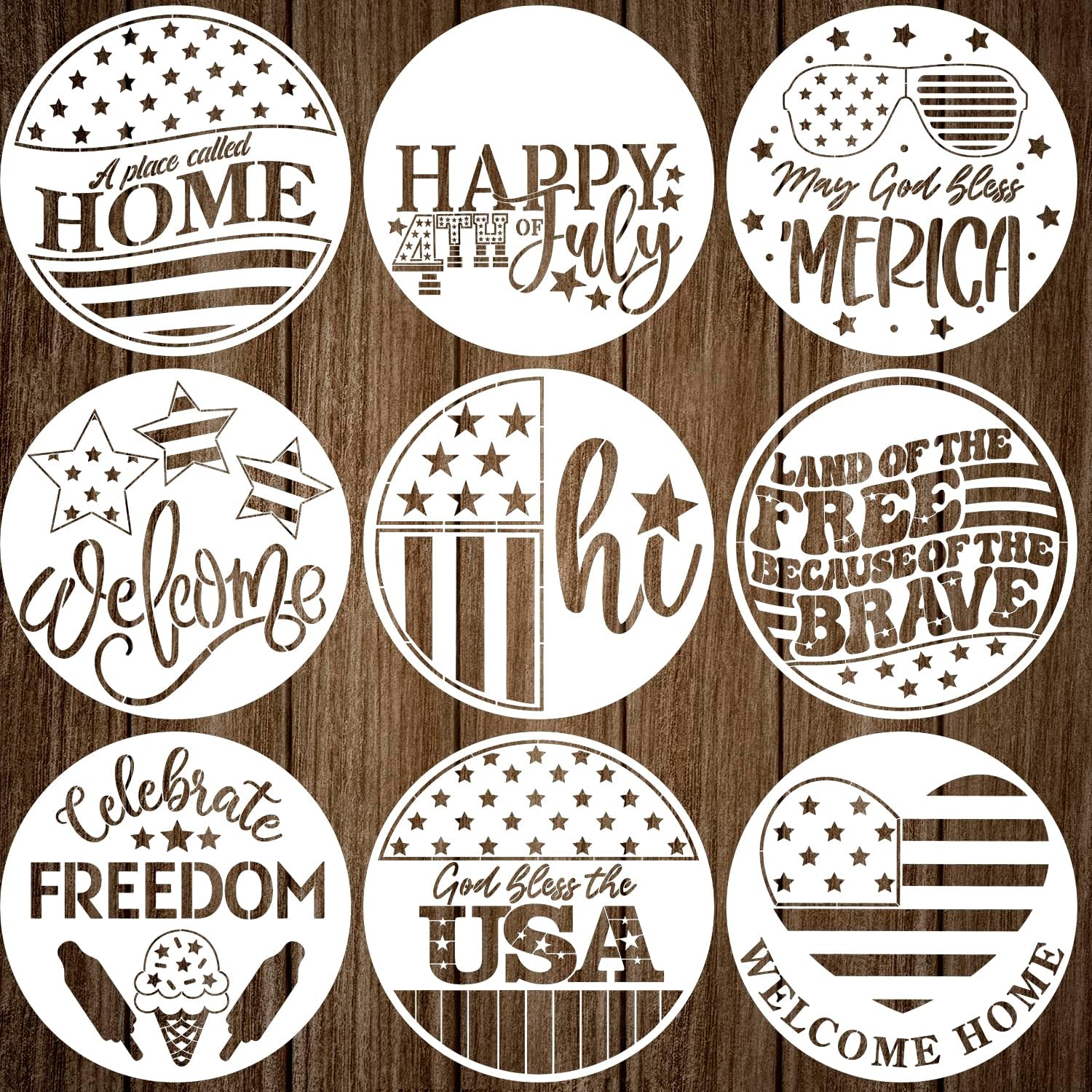 - Patriotic Welcome Stencils:Welcome your guests in style with this rustic 4th of July Stencil set! Add a touch of Independence Day to your porch or entryway.