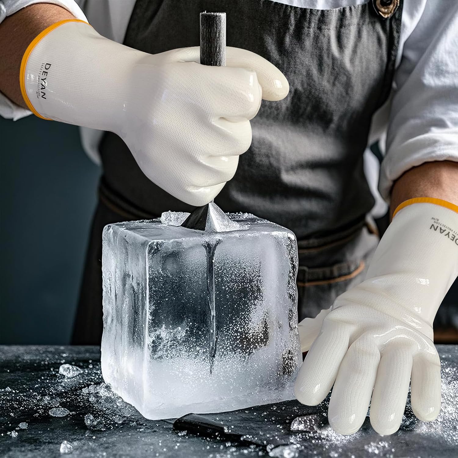 - High Temperature Resistant: Engineered to withstand extreme temperatures from -120°F to 600°F, these grilling gloves sustain prolonged exposure up to 480°F and brief contact at peak heat, while remaining waterproof, odorless, and impervious to grease and stains even when handling hot items
