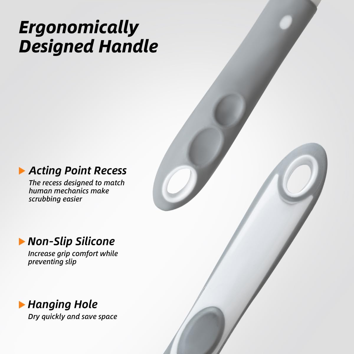 - 【Ergonomic Slippery-Proof Grip】Molded silicone handle with thumb rest design for increase grip strength, even if your hands are covered in soap. ideal bathroom scrub brush and grout cleaner brush