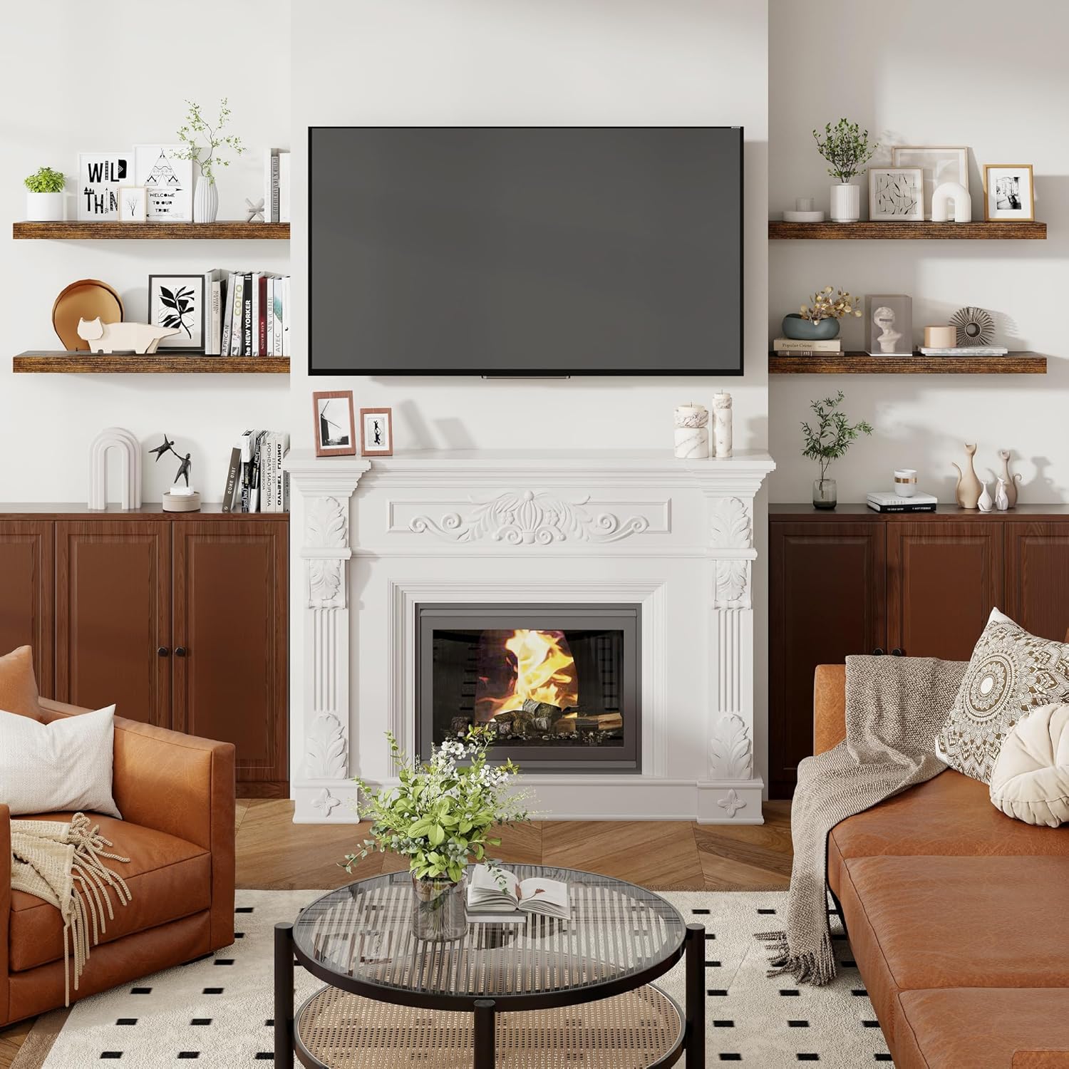 Heimlove 48 Inch Floating Shelves for Wall 8 Inch Deep Rustic Brown Shelves Set of 2,Wall Mounted Rustic Wood Long Floating Shelf,Large Display & Storage Shelf with Invisible Brackets