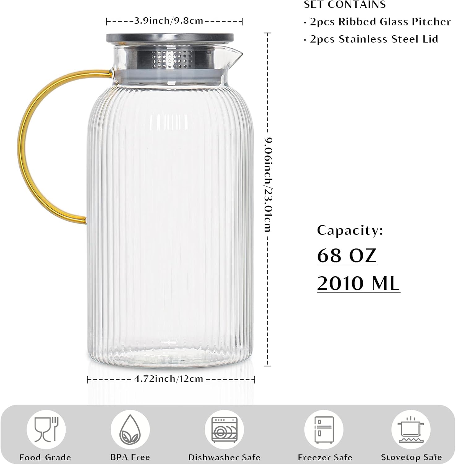 - 【Elegant & Practical Gift Idea】Featuring an elegant ribbed design, this glass water pitcher is as beautiful as it is functional. The vertical ribbed pattern enhances the elegance and modernity of your kitchen and dining area, making it a stylish decorative piece. It’s a thoughtful gift for family and friends on birthdays, housewarmings, Christmas, Easter, New Year’s, or any festive gathering.
