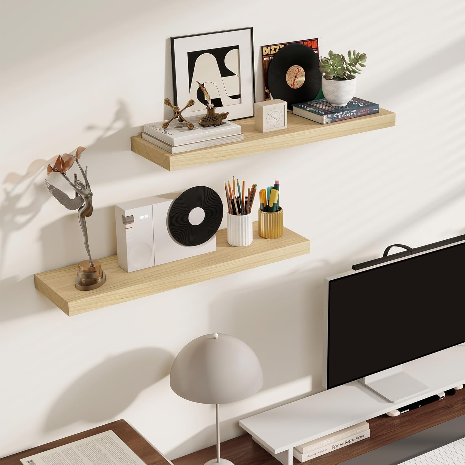 Fun Memories Rustic Floating Shelves for Home Decor, 8 Inch Deep Floating Shelf, Solid Wood Floating Wall Shelves 30 Inch Long, Deep Wall Shelves for Bathroom, Living Room, Natural Finsh, Set of 2