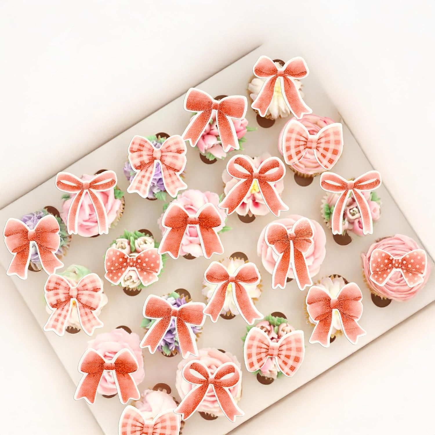 - -Edible Bow Cake Toppers are so cute and good for pink bow party, pink bow birthday party, coquette birthday party, baby shower, bridal shower, wedding, pink bachelorette party, family gathering party cupcake decorations. They can make your party more attractive and bring the fun to your party.