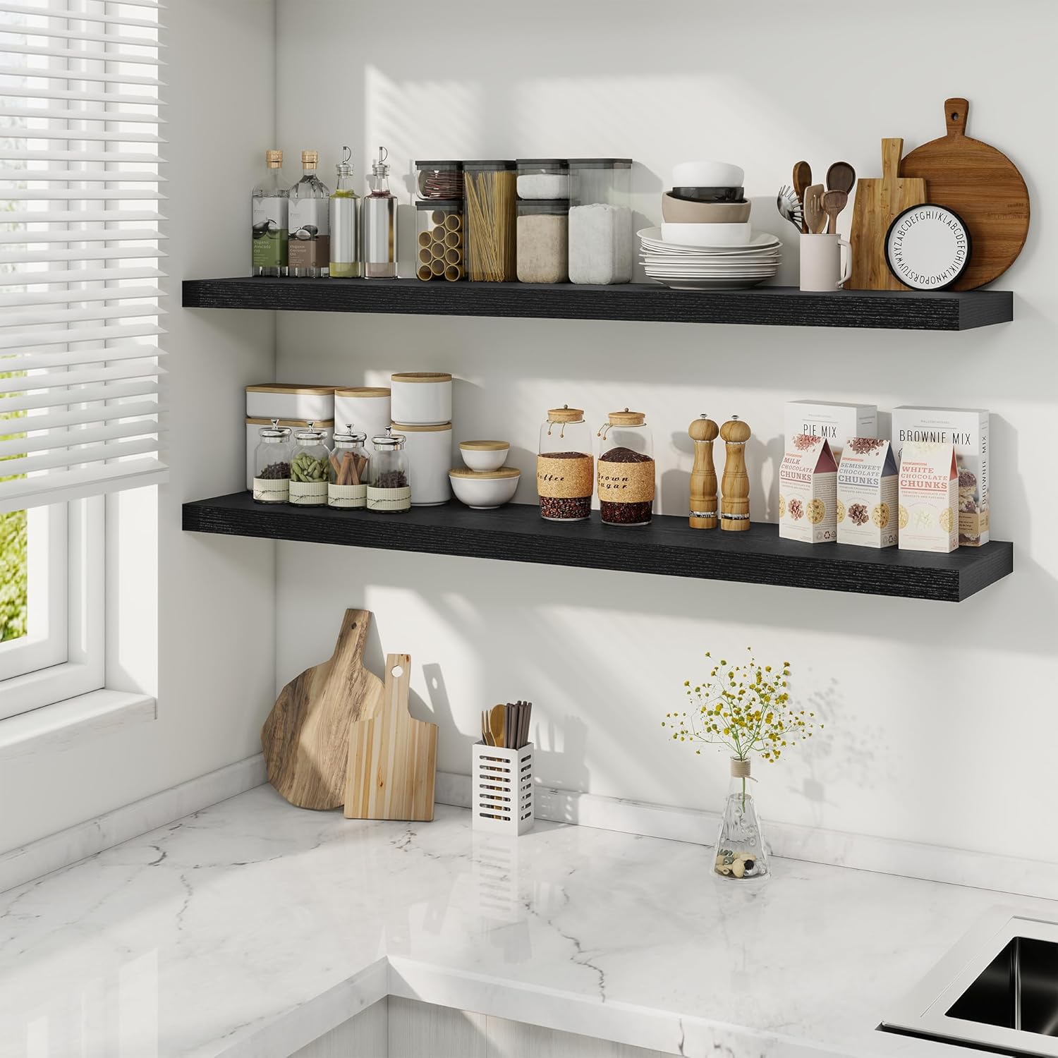 - Effortless Installation: Upgraded hidden brackets ensure a sleek, gap-free look with included tools (magnetic level, anchors, screws) for quick mounting in under 5 minutes. Combines rustic charm with modern stability
