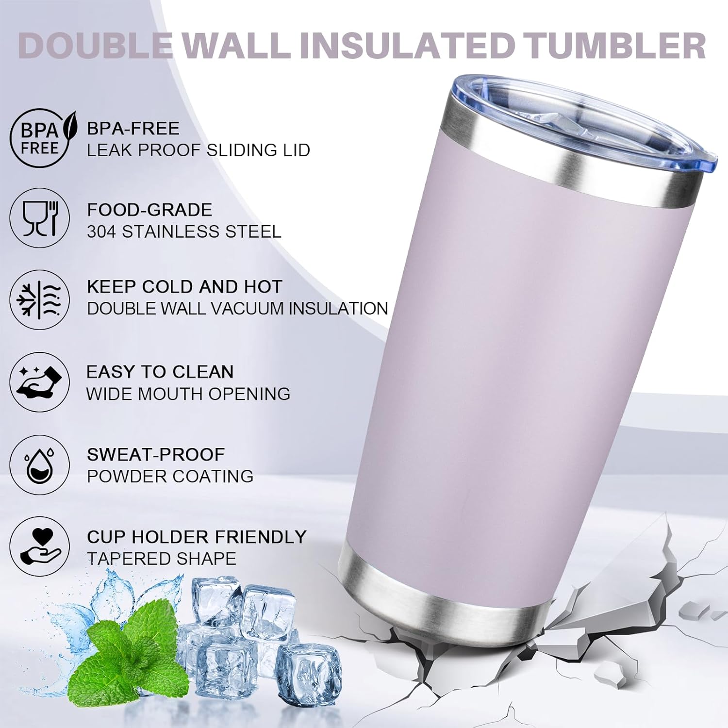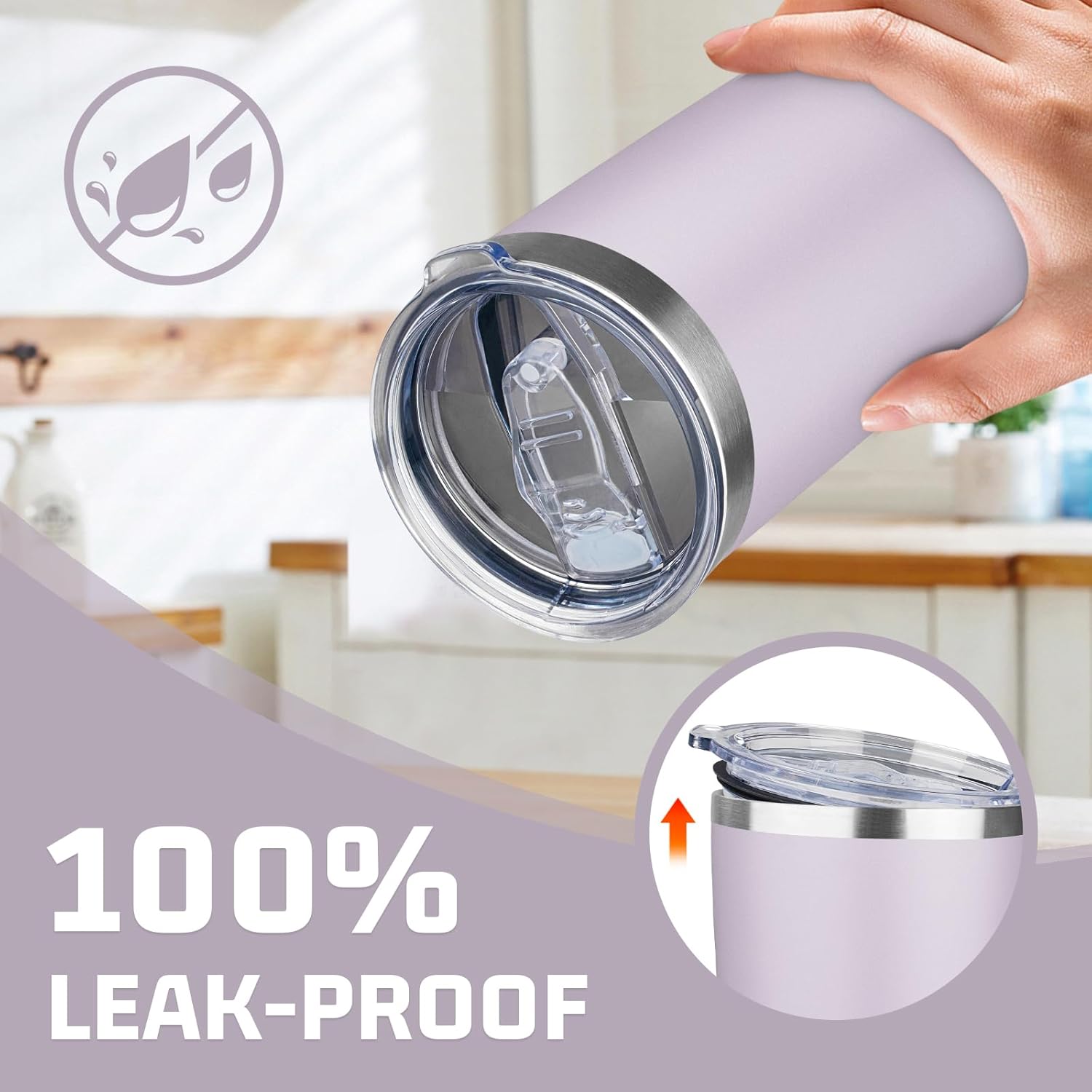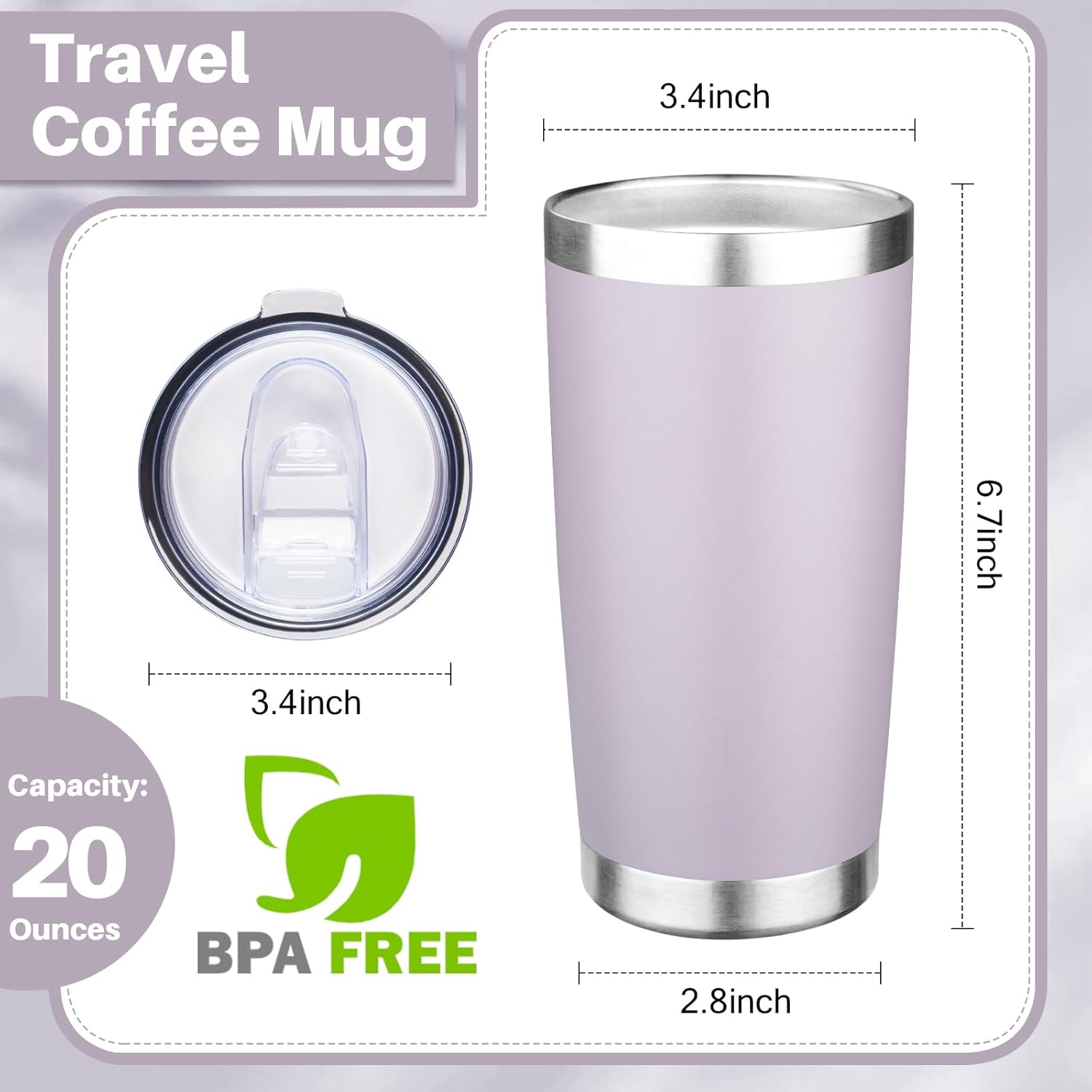 - ✅ 𝐁𝐏𝐀-𝐅𝐑𝐄𝐄 𝐚𝐧𝐝 𝐋𝐞𝐚𝐤-𝐩𝐫𝐨𝐨𝐟 𝐋𝐢𝐝: The 20 oz insulated coffee mug is equipped with a sliding lid which is BPA-free and healthy and the seal ring of the lid fits snugly into the mouth of the cup. When the sliding lid is closed, you don't have to worry about spilling your drink, even if the coffee tumbler is accidentally tilted.Our 20oz tumbler with lid for your daily or travel drinking needs, always hydrated.