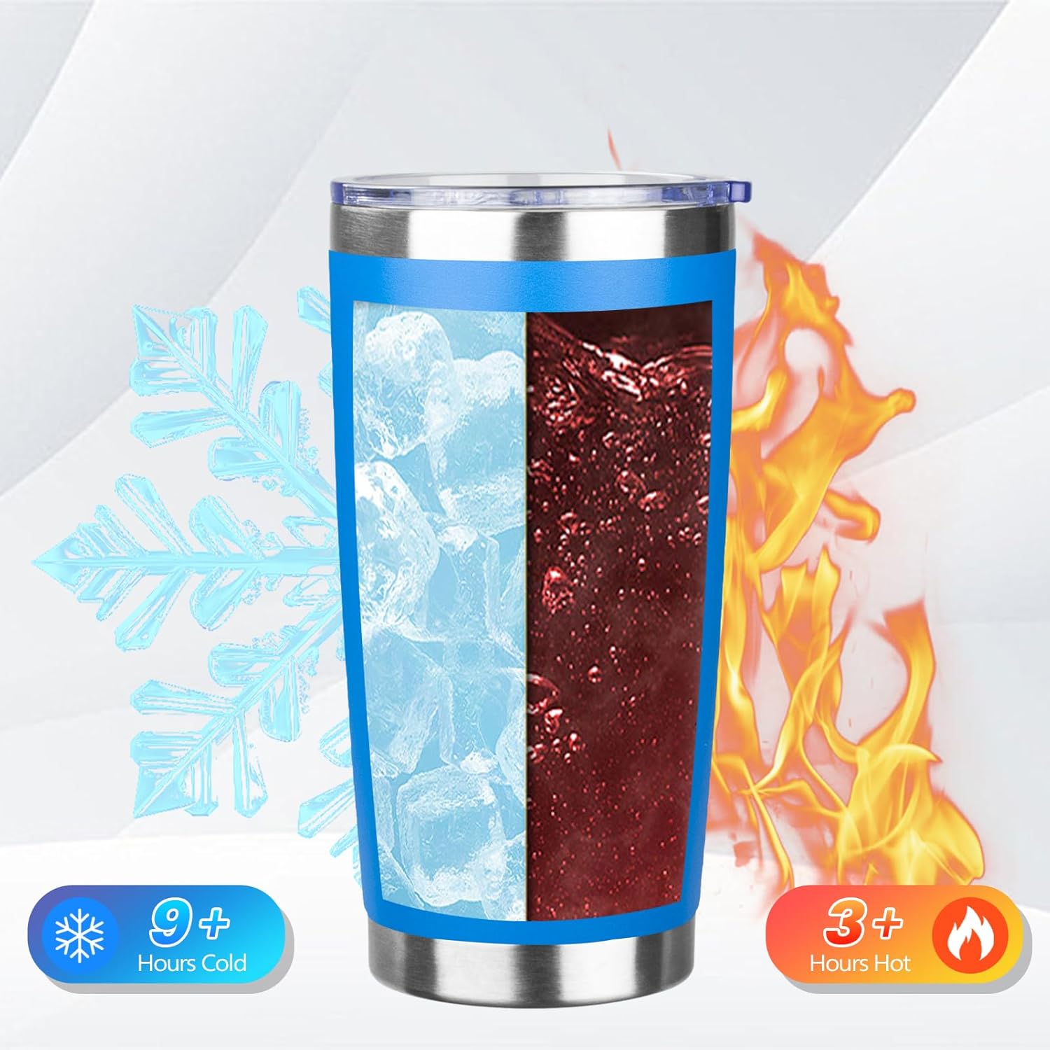 - BPA Free Lid: Stainless steel tumbler set with lid and an opening for drinking, be aware of how hot your coffee is before taking a sip. Under normal temperature, the insulated coffee cup keep your water hot for three hours and cold for nine hours