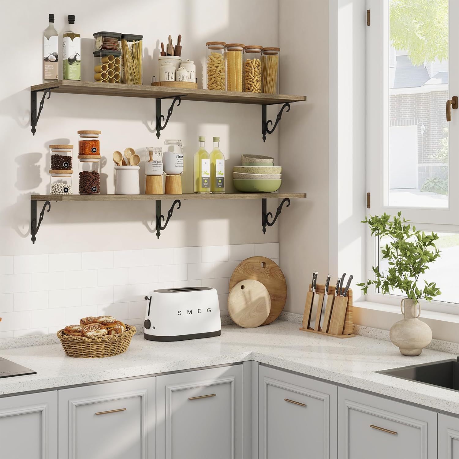 - Suitable for All Occasions: The floating shelves are designed for storage and decoration, wall-mounted shelves are ideal accent for any room - from keeping seasoning, plates, spices bottles in a kitchen area to holding books, collection, globe, photo frame, small plants and trophies in a living room, office, study or organizing hand towels and toiletries in a bathroom
