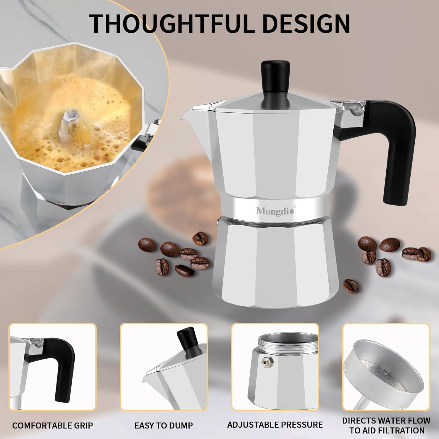 - Mongdio Guarantee: Our home percolator coffee pot is a must-have in every coffee lover's kitchen. Ideal for making espresso. The perfect gift for all coffee lovers, if you have any questions please feel free to contact us, 2 Years Guarantee!