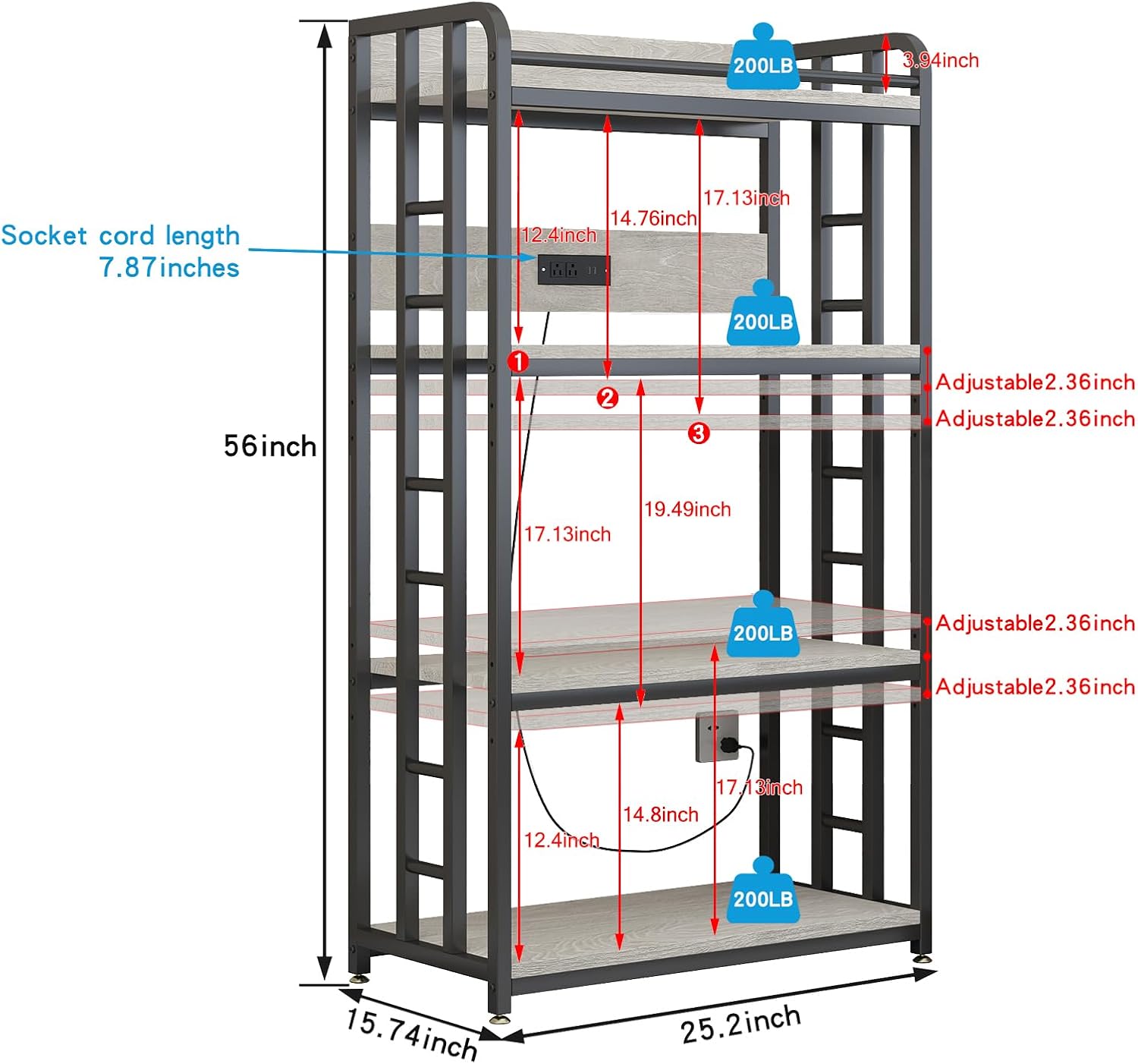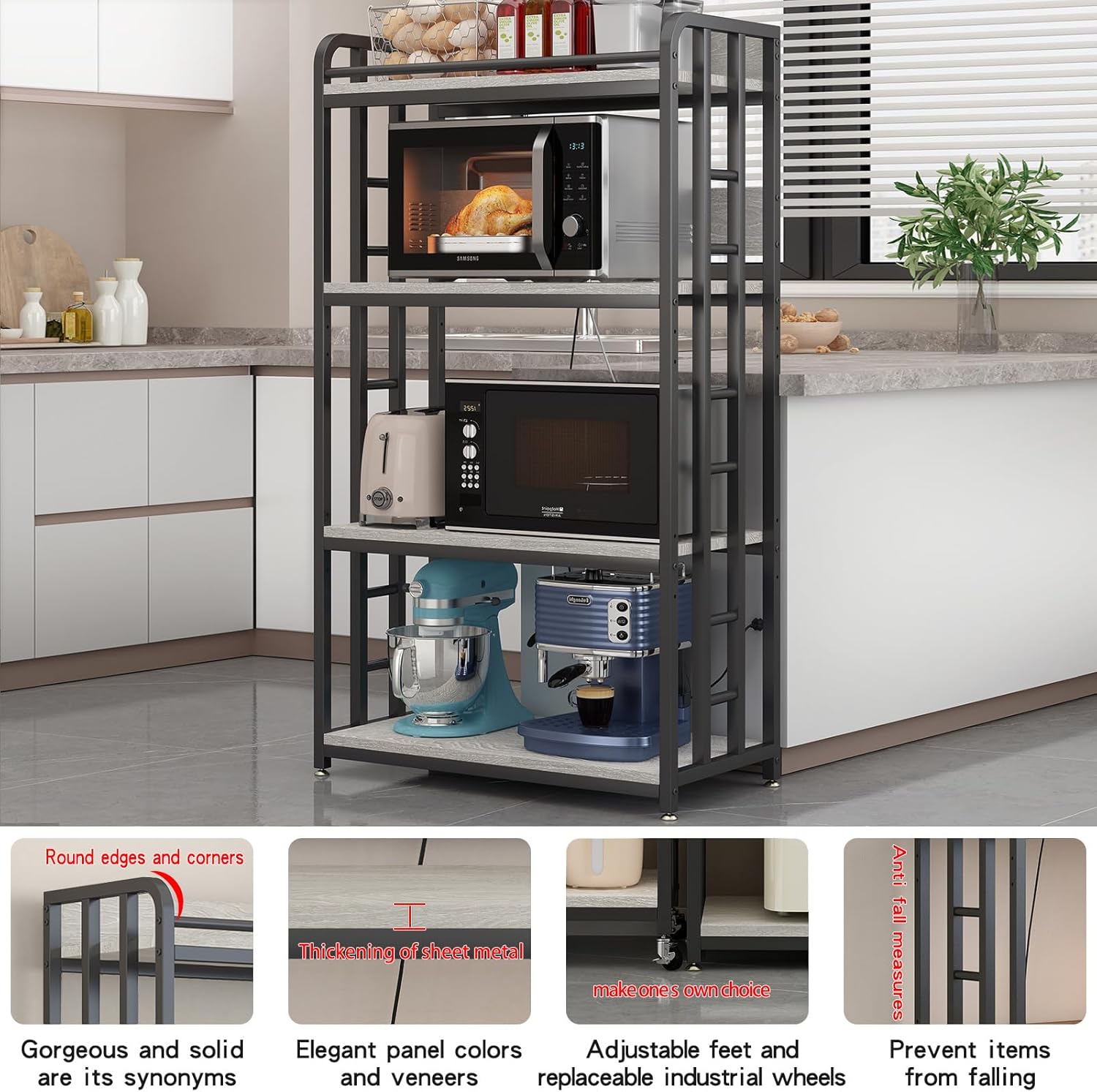 - 【Space-Saving Bakers Rack with Compact Design】Measuring 25.2 inches (L) x 15.74 inches (W) x 56 inches (H), this microwave stand is ideal for small kitchens or tight spaces, offering efficient kitchen storage without compromising on capacity.