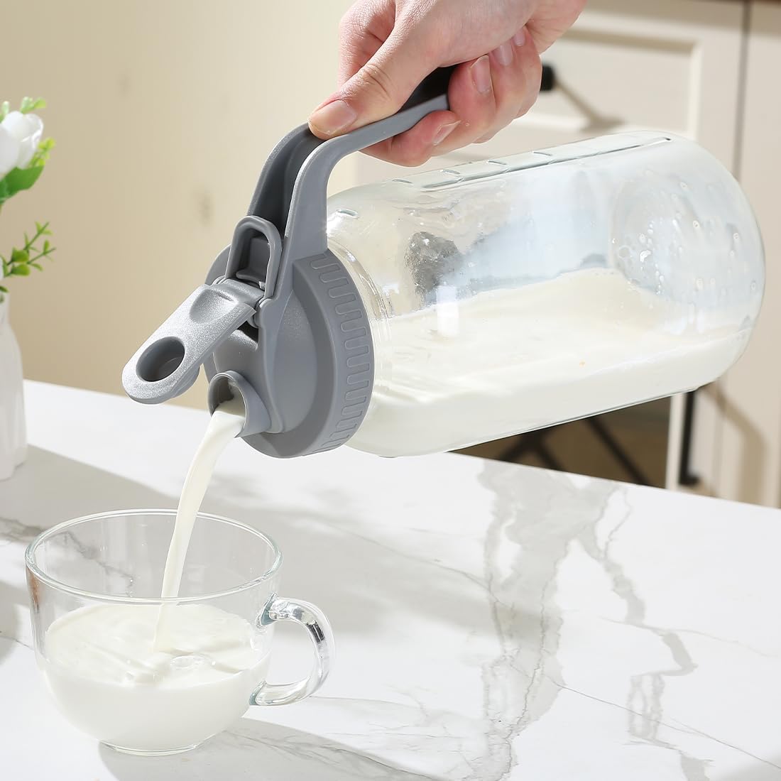 - Package included:1*64 OZ glass Jars with plastic lid.Dimensions of the pitcher body:4.3*4.3*10.2in