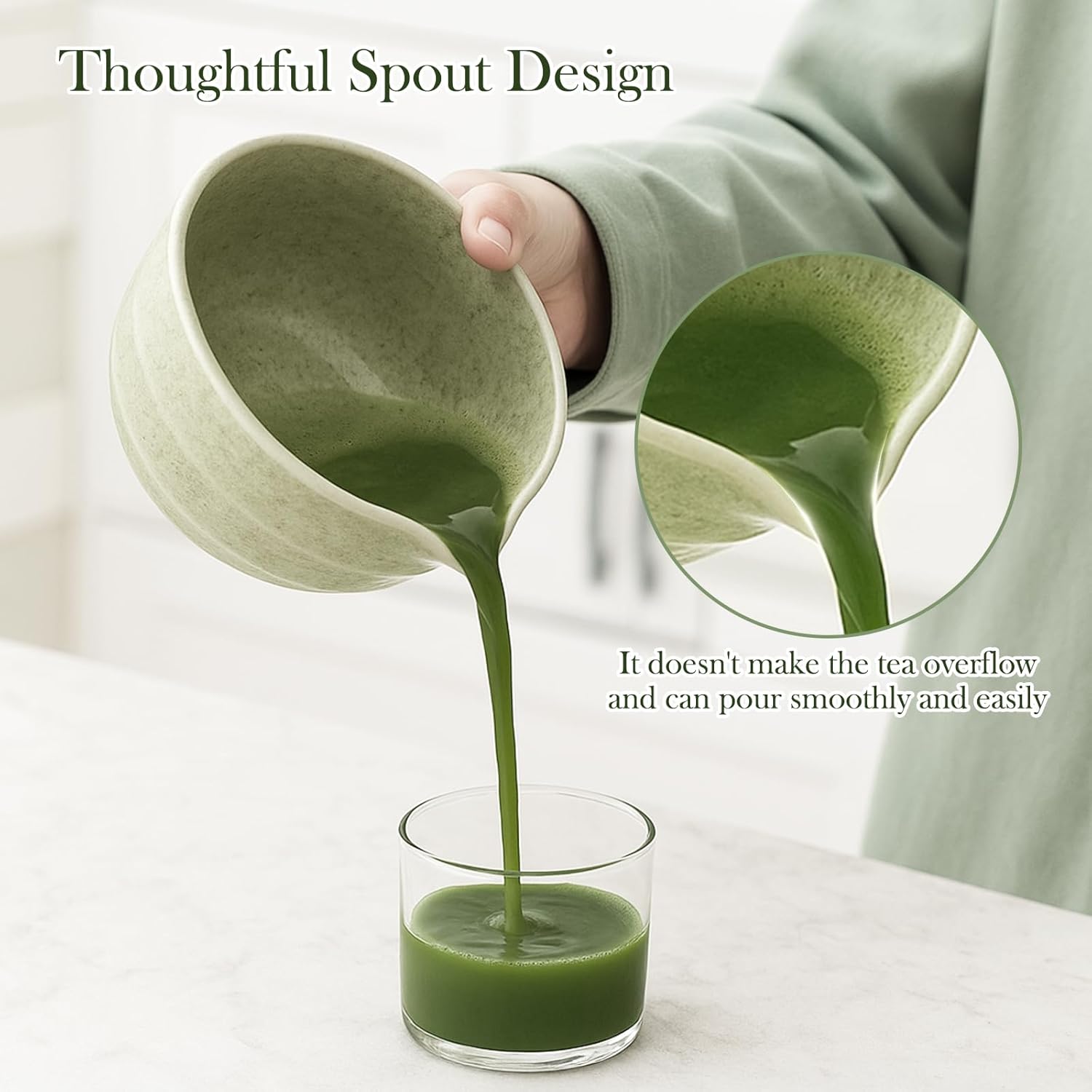 - Exquisite Bamboo Whisk: Featuring a handcrafted matcha whisk with 76 precisely spaced bristles, our set ensures smooth clump-free mixing. The 17-oz matcha bowl's ergonomic shape and spill-resistant spout allow effortless pouring, while dishwasher-safe materials simplify cleanup after each tea ceremony