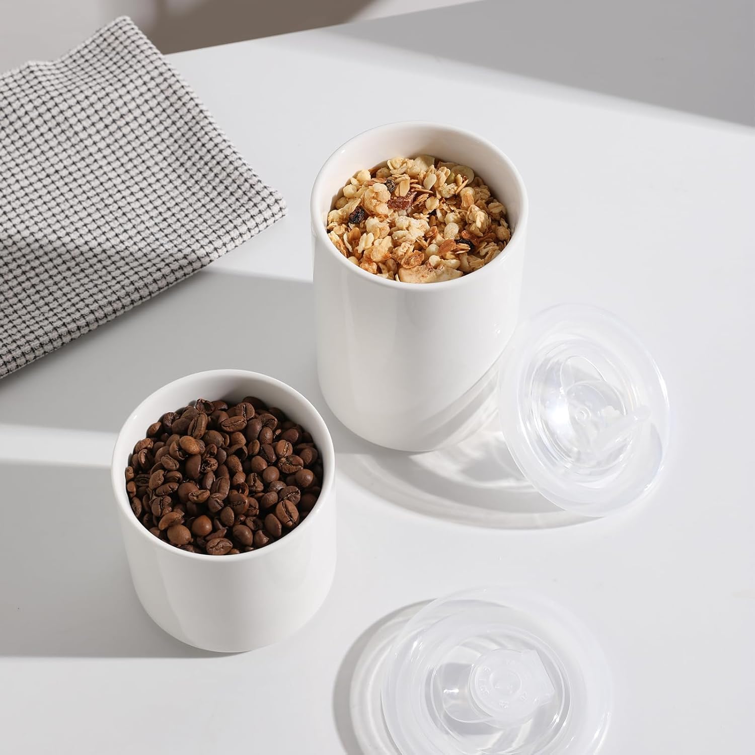 Sweejar Ceramic Food Storage Jar, Salt Container with Airtight Plastic Lid & Date Tracker, 28 Oz Kitchen Canisters for Flour, Rice, Sugar, Coffee, Spices, Pantry Organization (White)