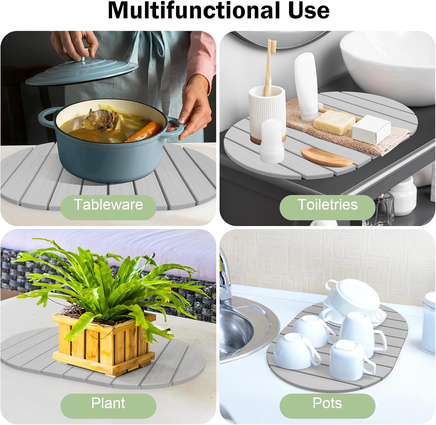 - Multifunctional and Practical: The kitchen drying mat is not only suitable for efficient drying of tableware, but also very suitable for conveniently placing potted plants, fruit, pet feeding mat, heat proof mat and stone bath mat