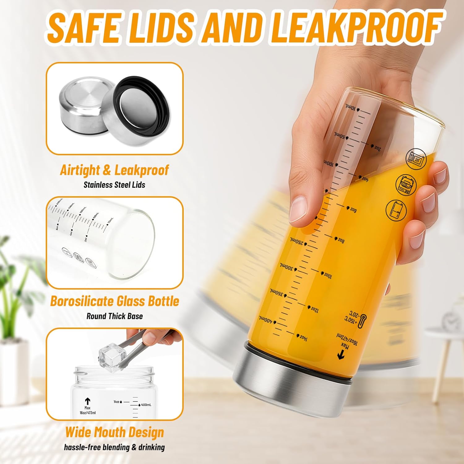 - Premium Borosilicate Glass & Durable:Crafted from high-quality borosilicate glass, our 12oz juice bottles resist thermal shock and cracking. Crystal clear and odor-free, they keep your beverages fresh and pure—perfect for juicing, smoothies, or cold brew coffee
