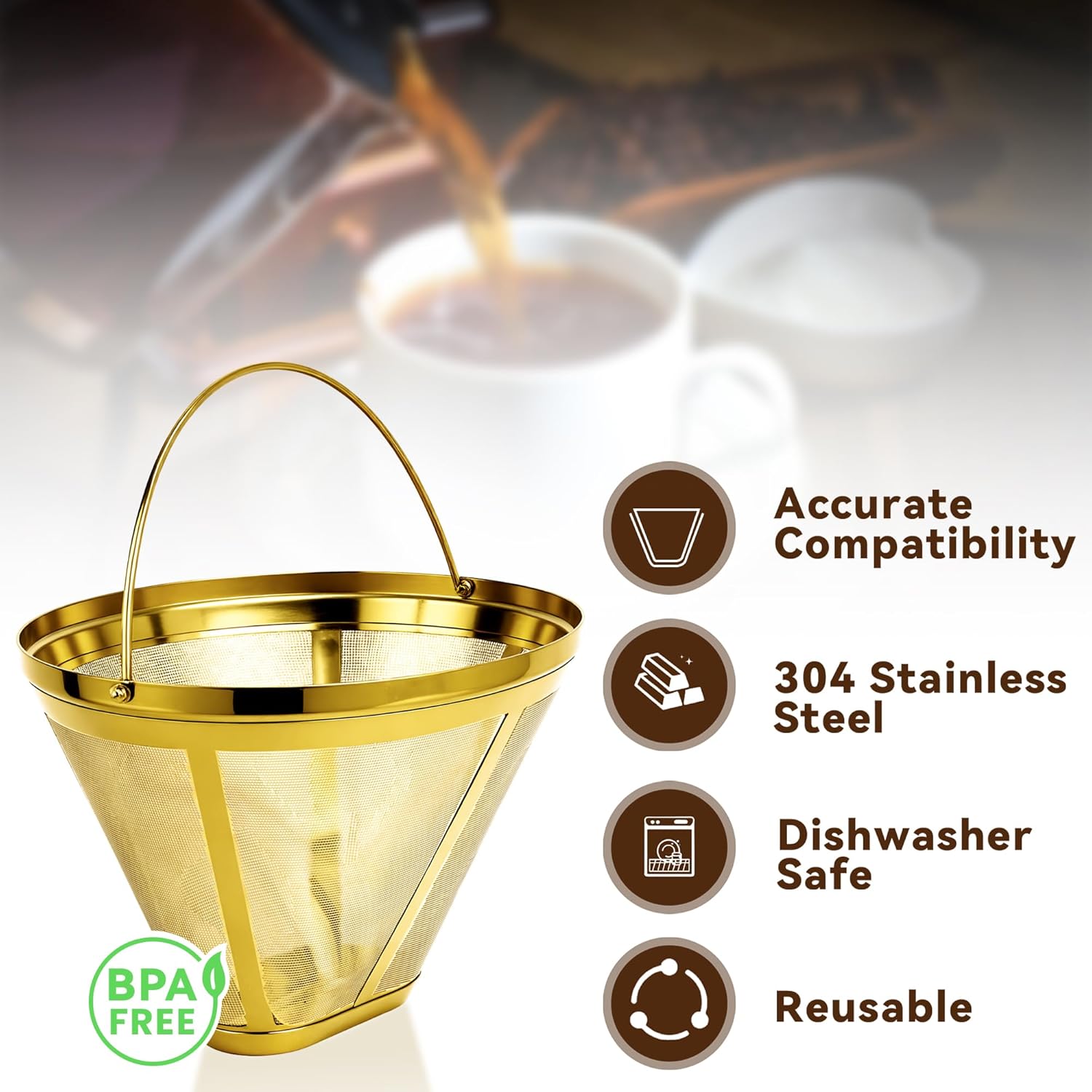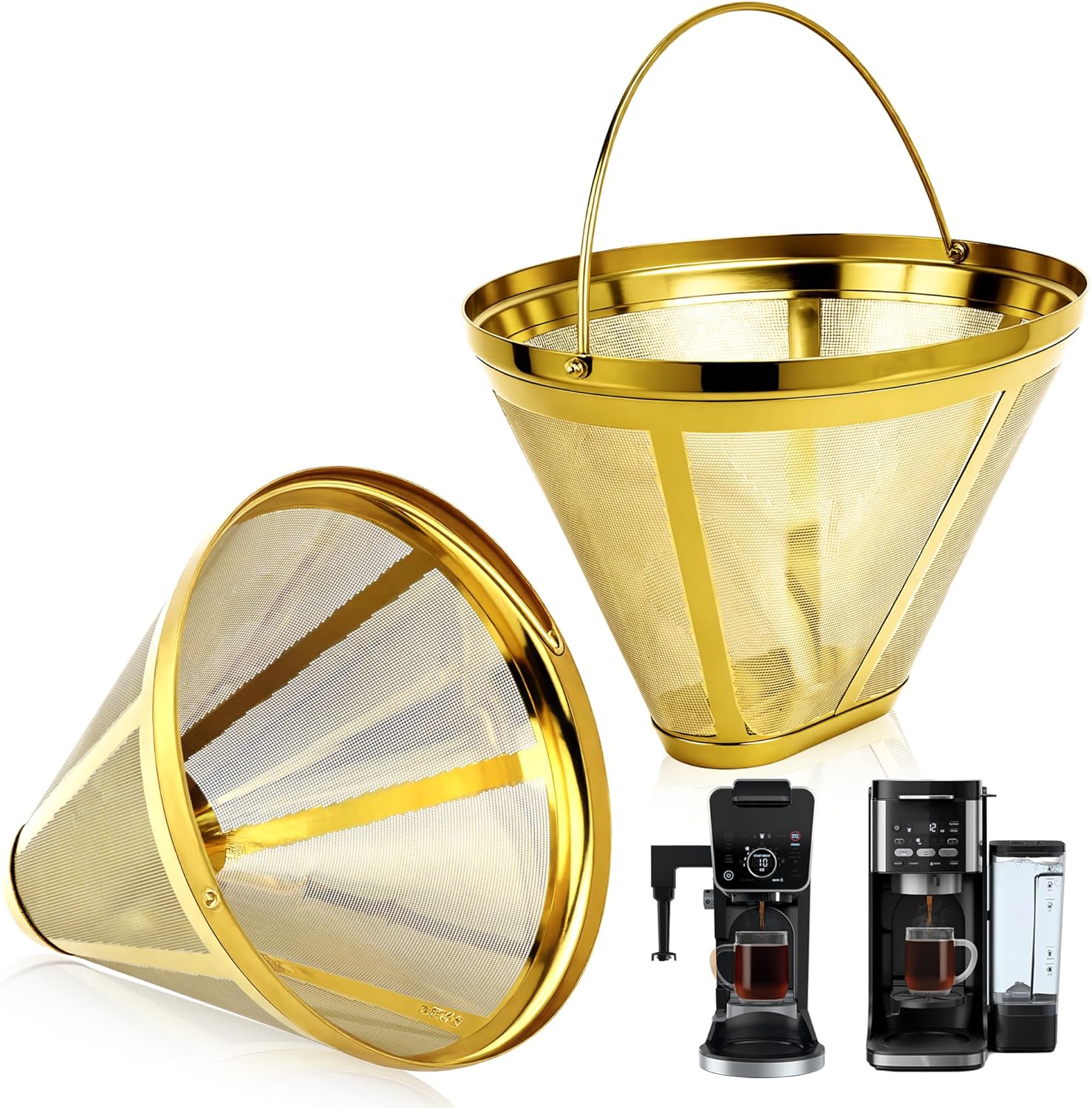 - The stainless steel coffee filter is fully compatible with Ninja dual brew pro, Ninja coffee bar brewer 8-12 cup, also fits Black & Decker, Cuisinart, Hamilton Beach, and more #4 cone shape coffee makers.