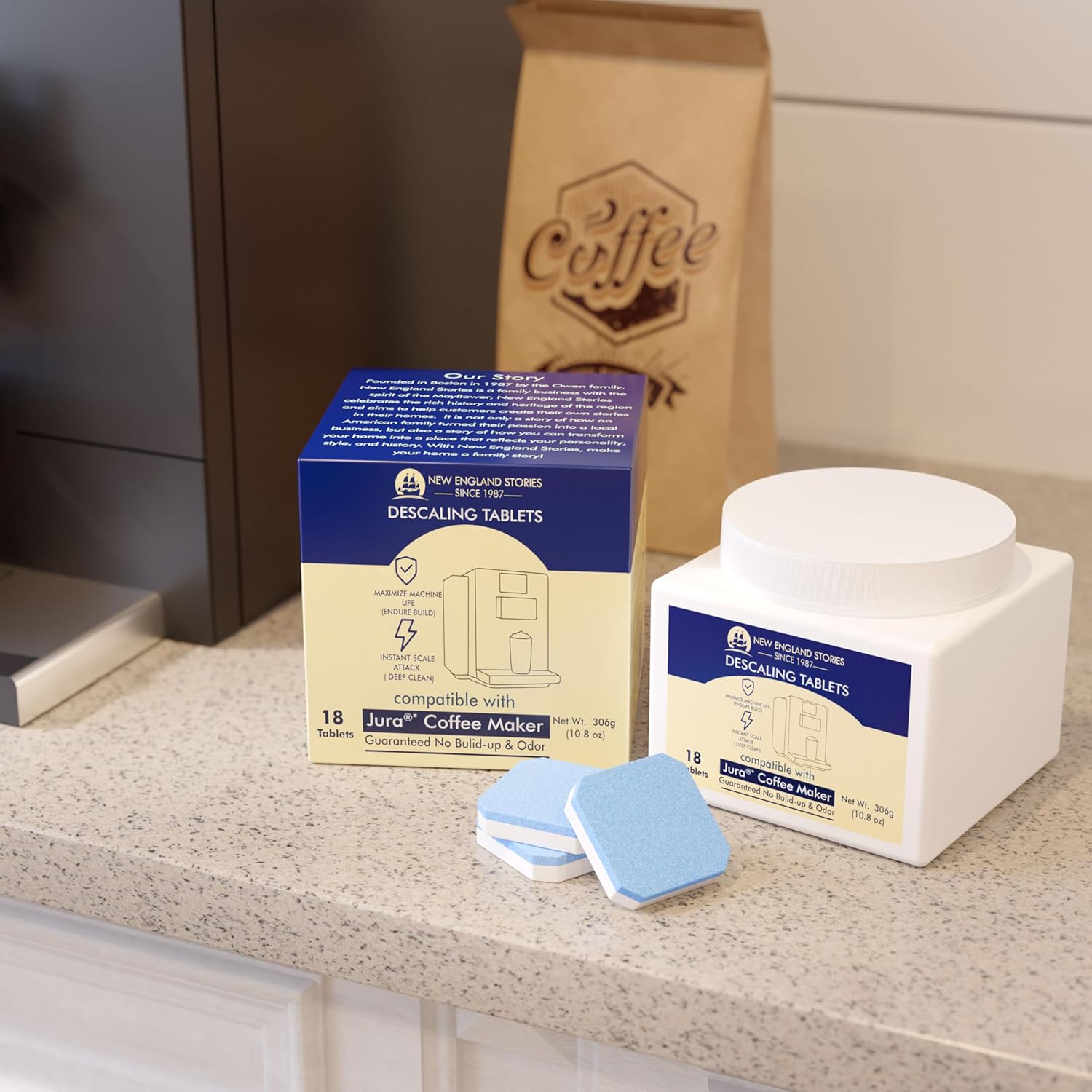 New England Stories Jura Compatible Descaling Tablets 18-Pack - Remove Limescale & Calcium, Improve Coffee Taste for Coffee Machines