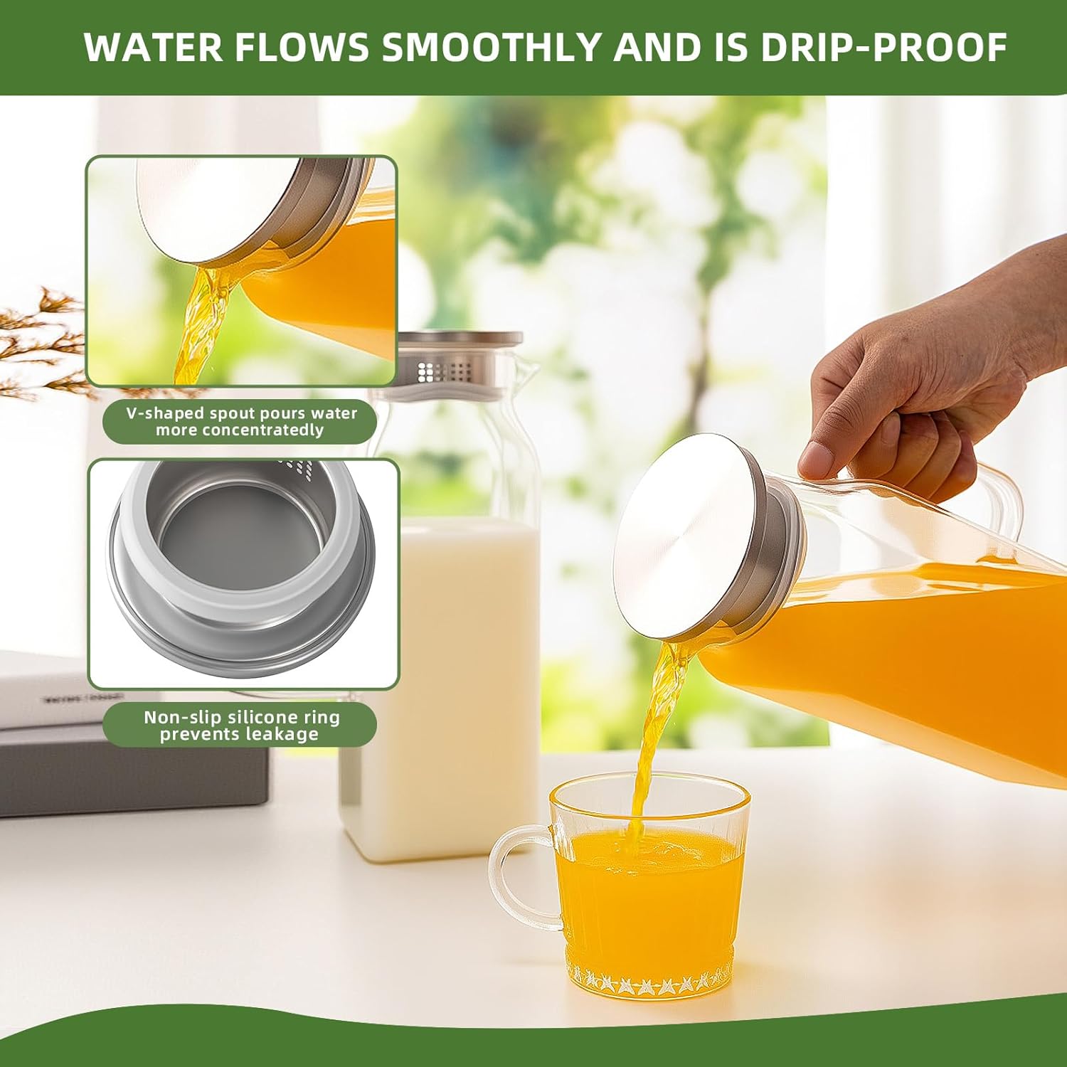 - [Safe and Sturdy Glass Material]: Our pitcher is crafted from premium high-grade borosilicate glass, ensuring it's 100% free of lead, heavy metals, and toxins. With a sturdy 4mm thickness, our pitchers are built to last, ensuring enduring durability.