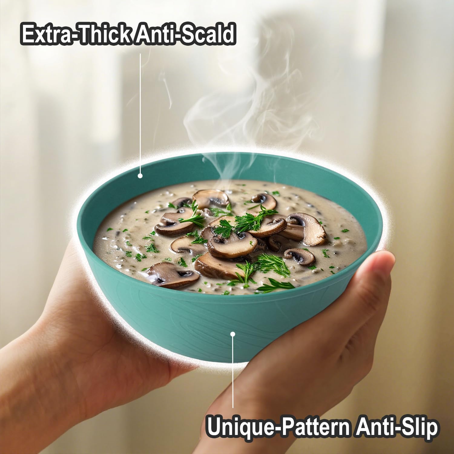 Wheat Straw Bowls for Kitchen set of 6,Anit-Scald Thick Soup Bowls 40oz,Microwave and Dishwasher Safe Bowl set easy to clean. Green