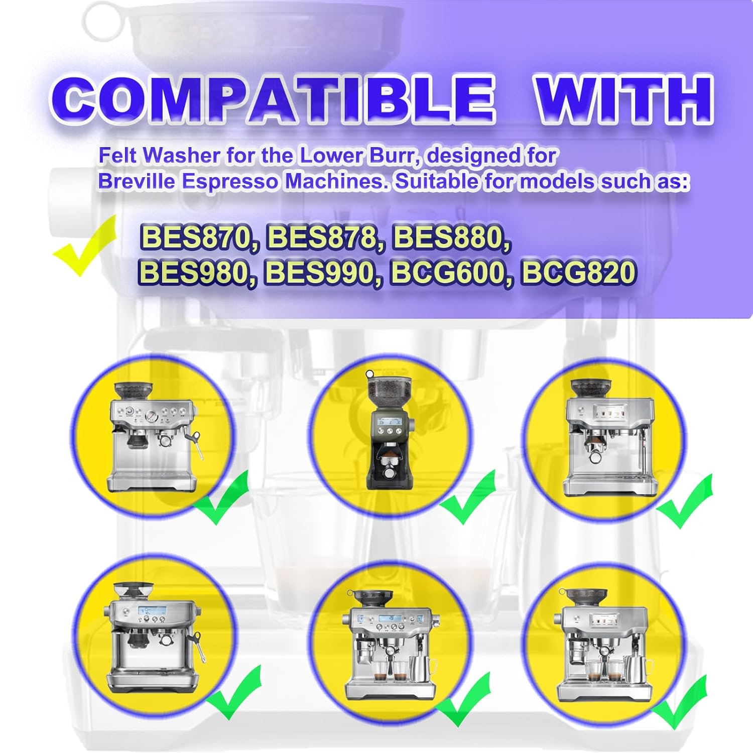 - 【Wide compatibility】Our felt washer replacement kit is compatible with a variety of Breville coffee grinder models, including BES870, BES880, BES878, BCG820, BES980, BES980,...