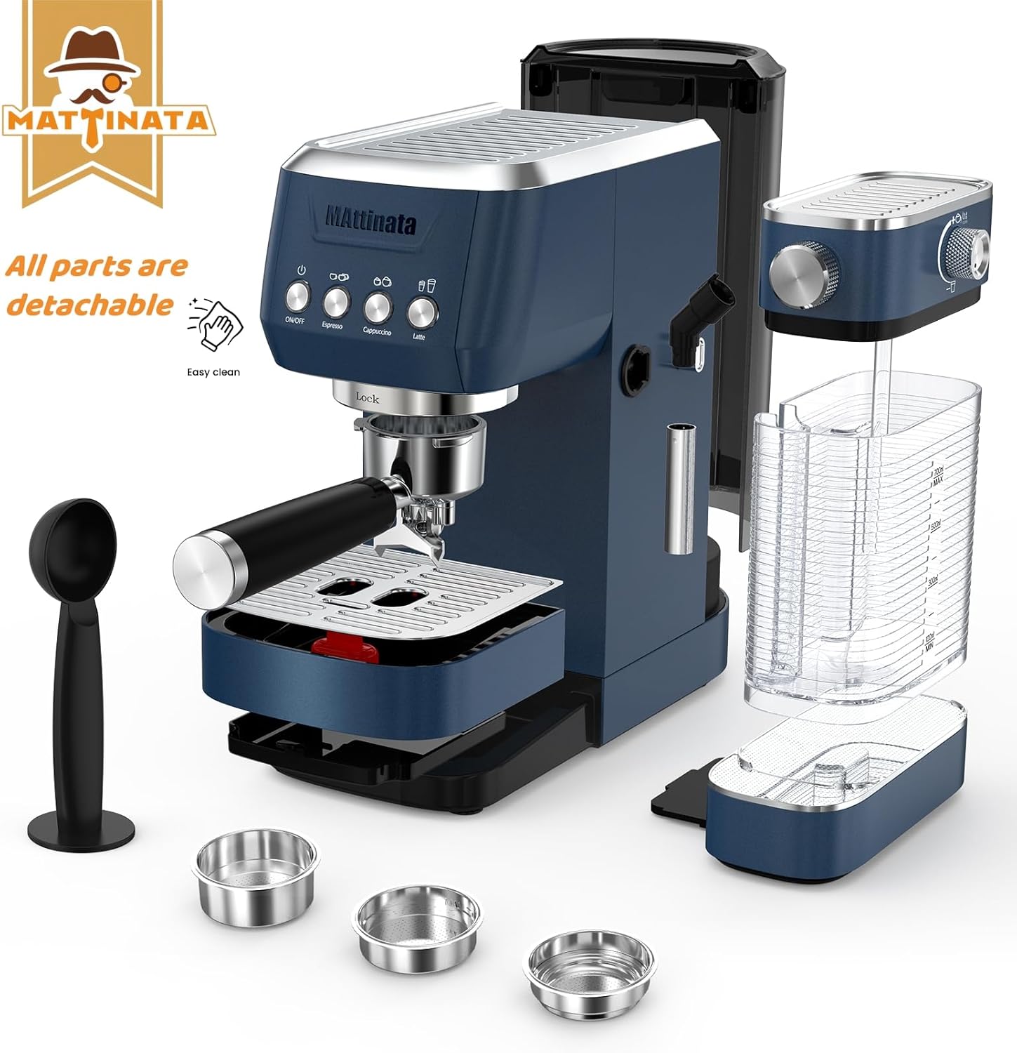 - Space-Saving & Complete Bundle: Featuring a removable 47oz water tank and drip tray, this 0.03m³ compact cafe combines effortless maintenance with kitchen-friendly dimensions. It comes with a cappuccino maker, single/double and ESE cup filter, basket easy remover accessory, 51mm pointy portafilter, a metal coffee spoon with tamper