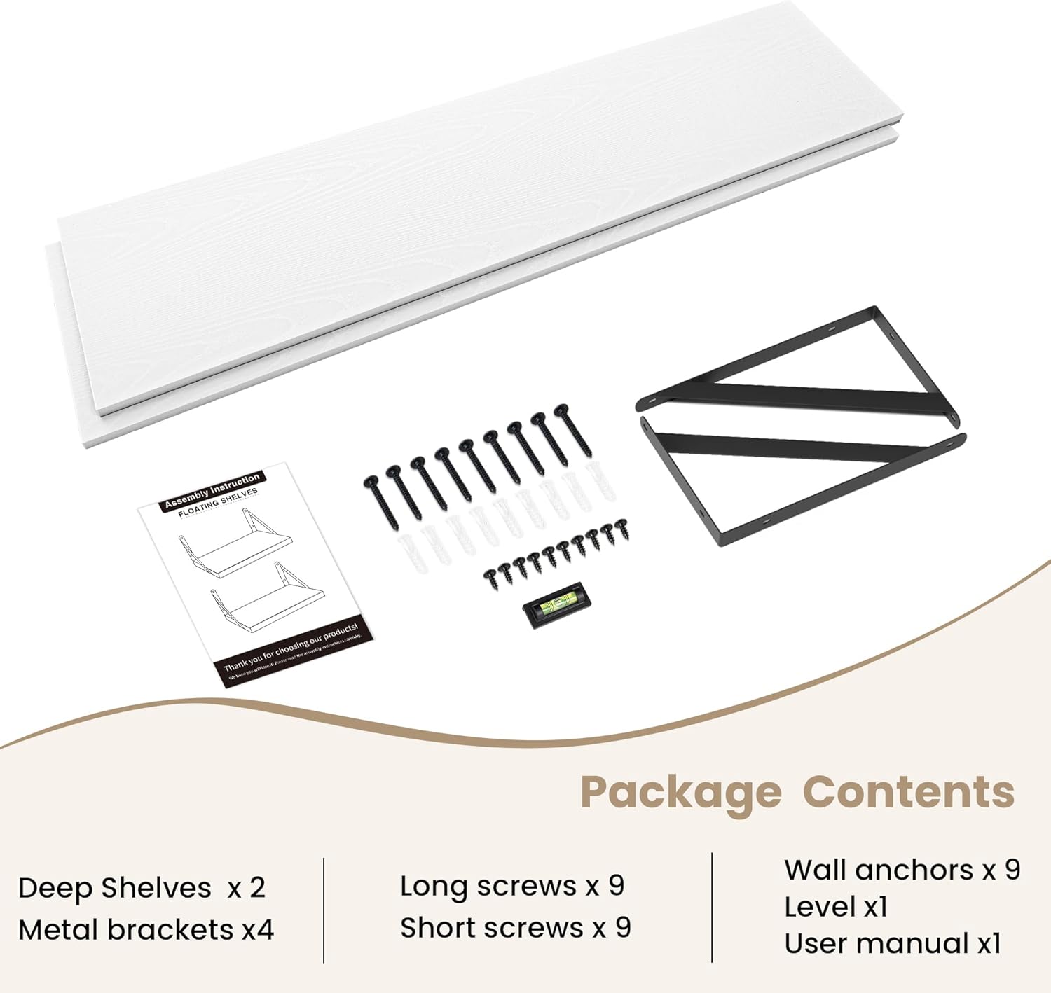 - Easy to assemble: Easy to install in minutes with the installation manual. In addition, when you mount our deep floating shelves firmly on the wall, they can hold up to 80 lbs of weight.