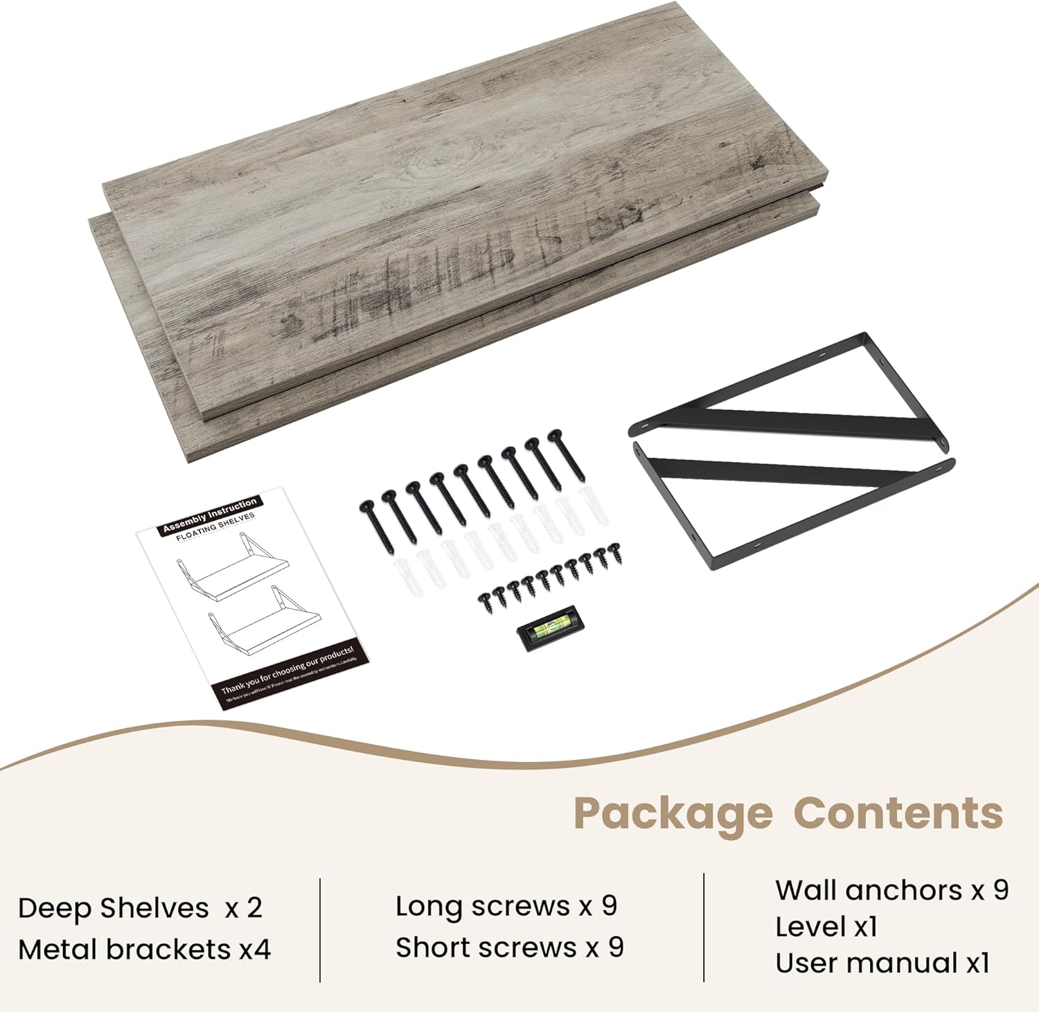 - Easy to assemble: Easy to install in minutes with the installation manual. In addition, when you mount our deep floating shelves firmly on the wall, they can hold up to 55 lbs of weight.