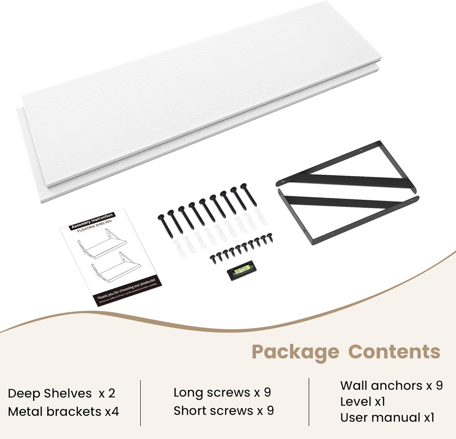 - Easy to assemble: Easy to install in minutes with the installation manual. In addition, when you mount our deep floating shelves firmly on the wall, they can hold up to 70 lbs of weight.
