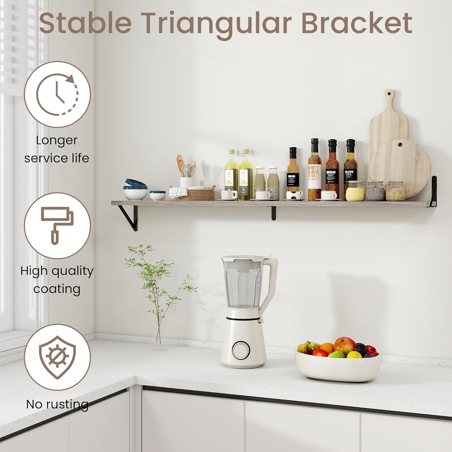 - Wide Application: These floating shelves are perfect for any room in your home. Use them in the living room to display artwork, in the kitchen for spices and utensils, in the bathroom for toiletries, or in the bedroom for books and accessories. Their versatility ensures they meet your storage and decor needs wherever you place them.