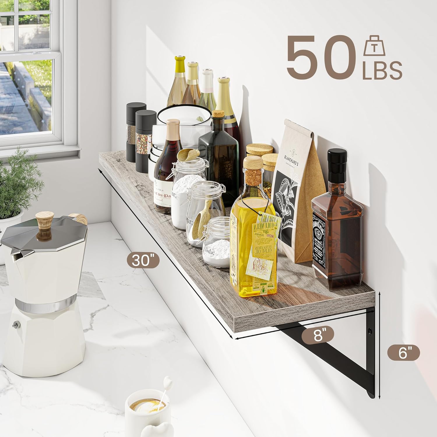 - Large with more Storage: With dimensions of 30 W x 8 D inches, these wall shelves offer ample space for storage and display. Whether you're showcasing your favorite books, photos, or decorative items, you'll find plenty of room to keep your essentials organized and within reach.