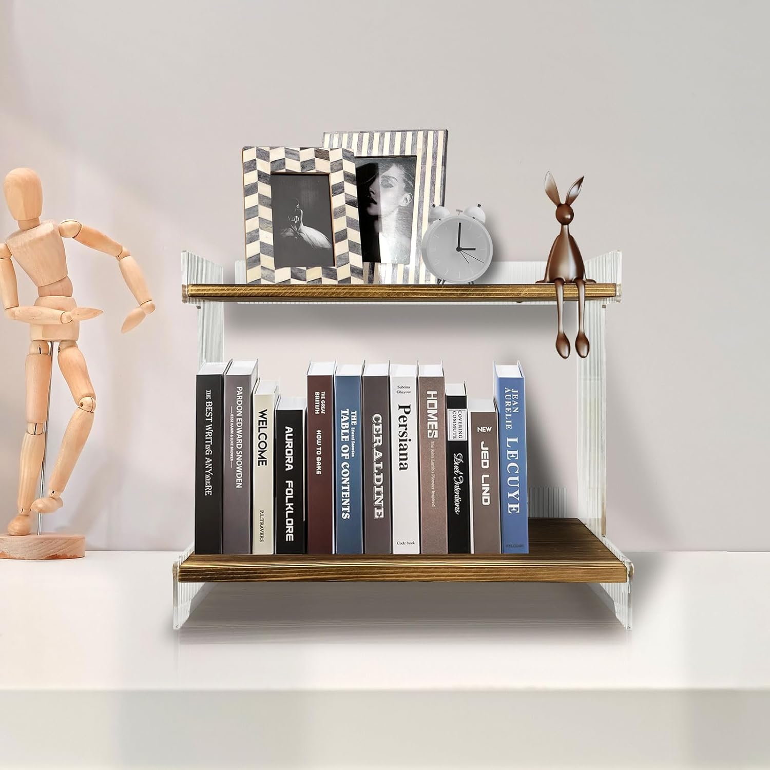 - Acrylic and Solid Wood Construction: The sides of the organizer feature sturdy 5mm-thick corrugated acrylic for support. The textured acrylic surface adds visual appeal, making the rack a stylish addition to any home. The shelf layers are crafted from solid wood, free from chemical treatments, and emit a natural woody fragrance.
