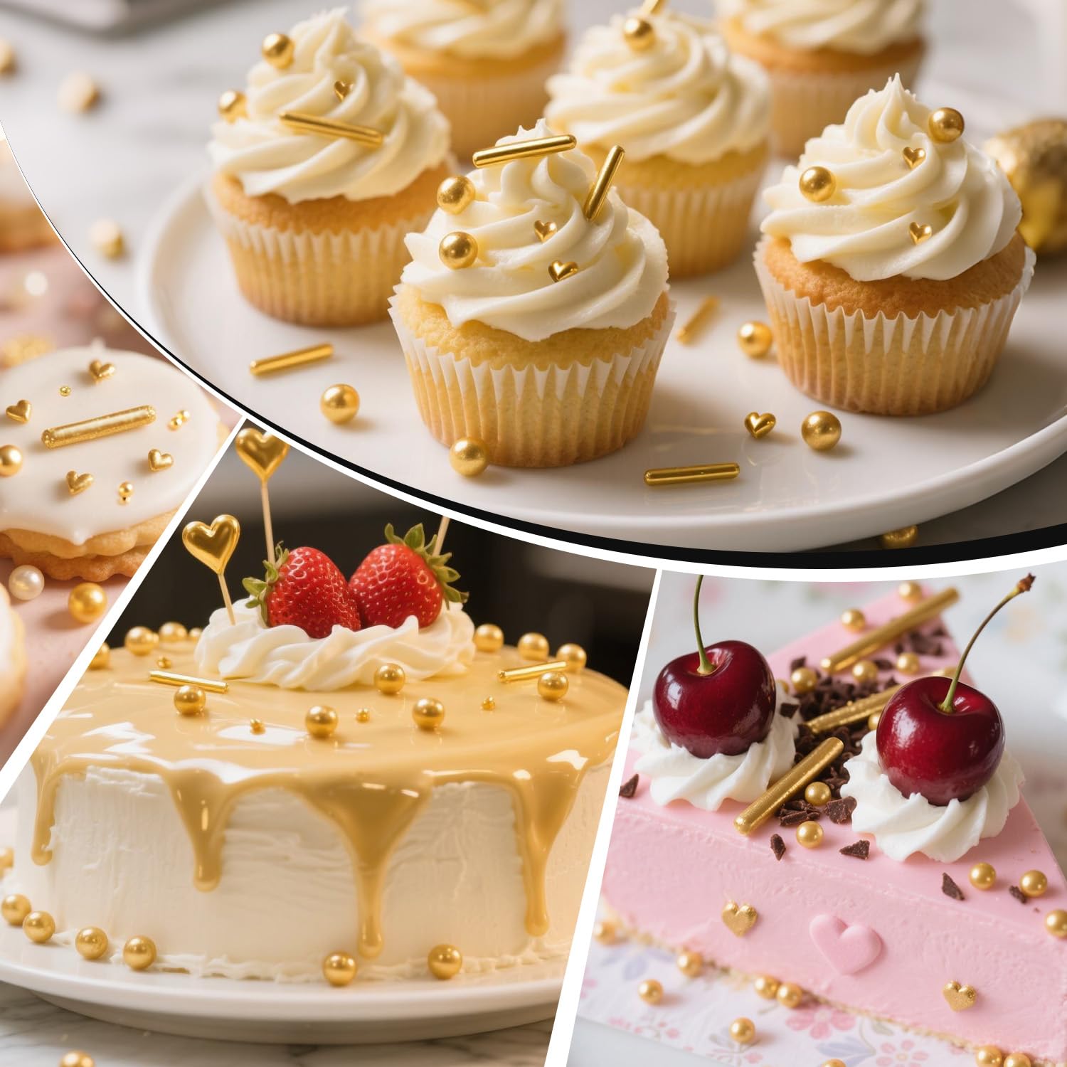 - Whether it's a New Year's party, a wedding, Mother's Day, a Halloween bash, Valentine's Day, or a routine dessert-making session, Gold Pearl Rods Heart Sprinkles can make your baking more enjoyable and flawless.