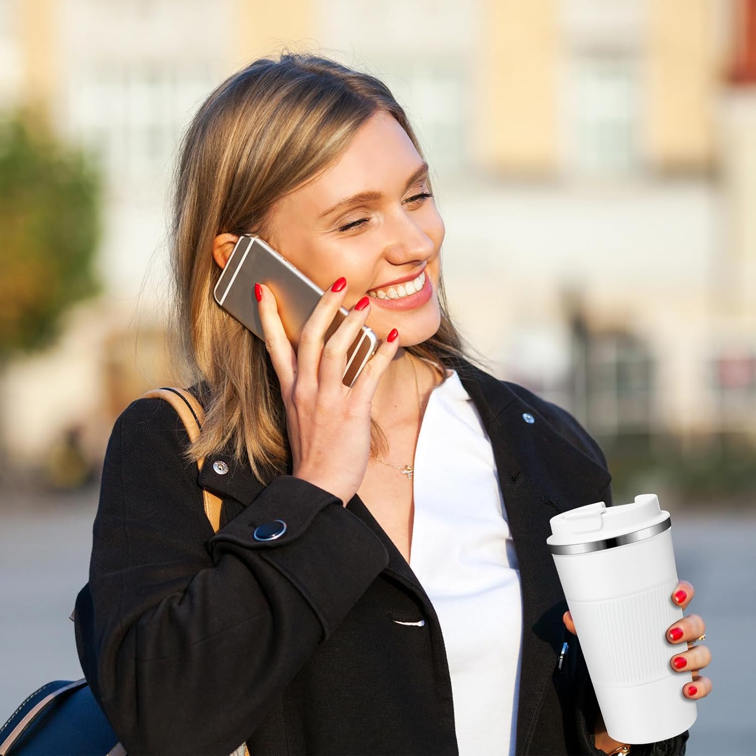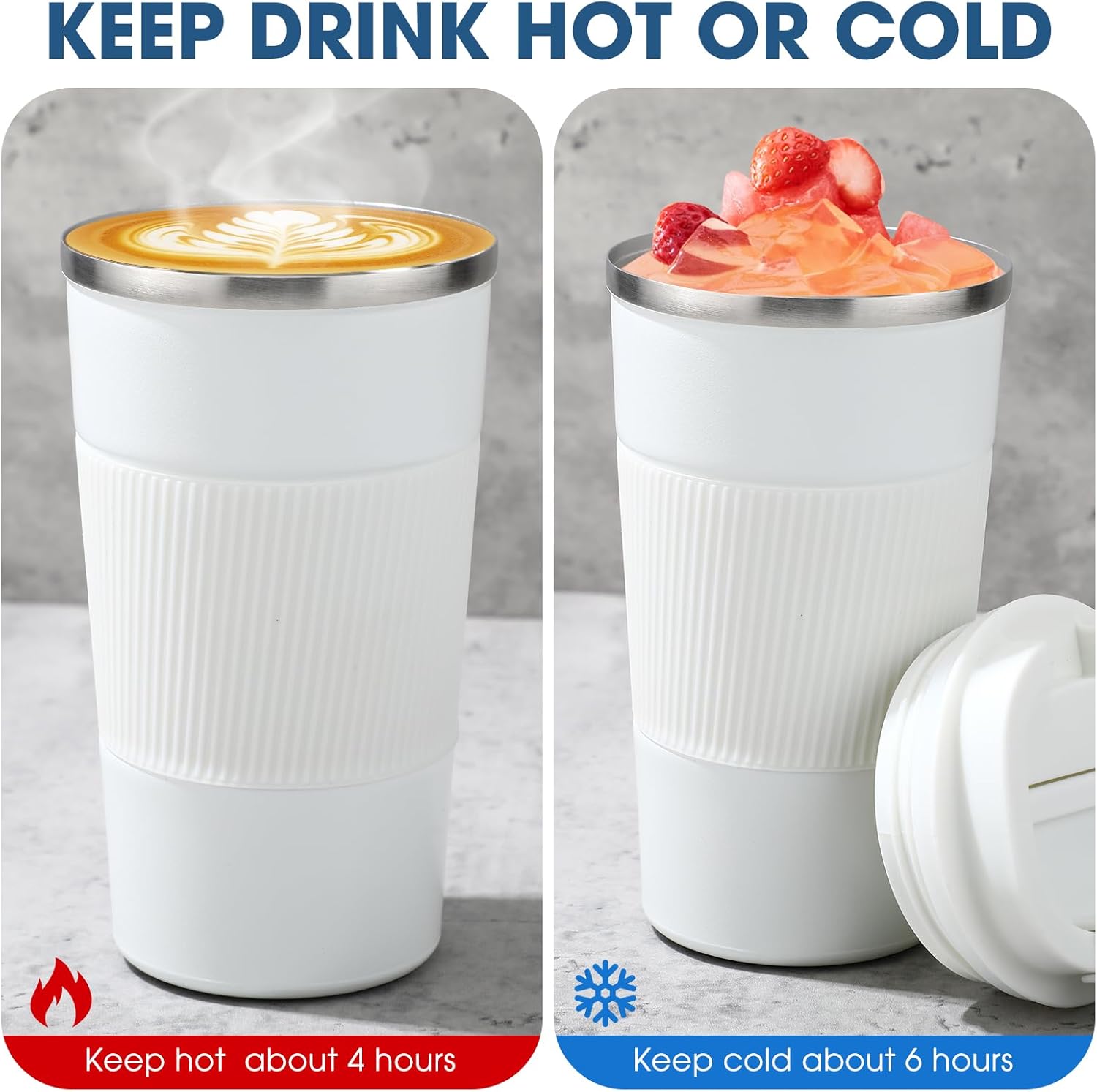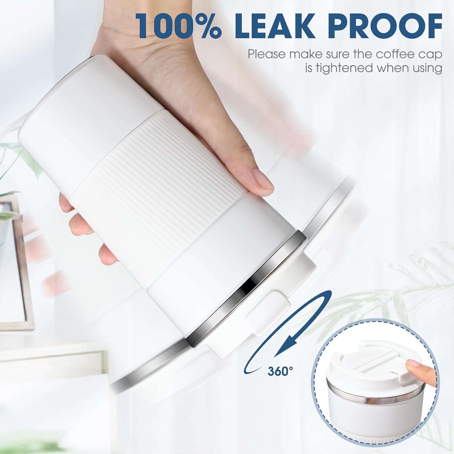 - Leakproof Travel Coffee Cup: the insulated coffee mug with spiral side comes with sealing rings for effective leakproof travel, you can shake the mug as much as you like without worrying about liquid spilling over and wetting your travel or office bag, the travel coffee mug includes a clamshell opening that makes it easy to drink with one hand, whether you're walking or sitting in the car, the size of the spout ensures that you will not get spilled in an emergency