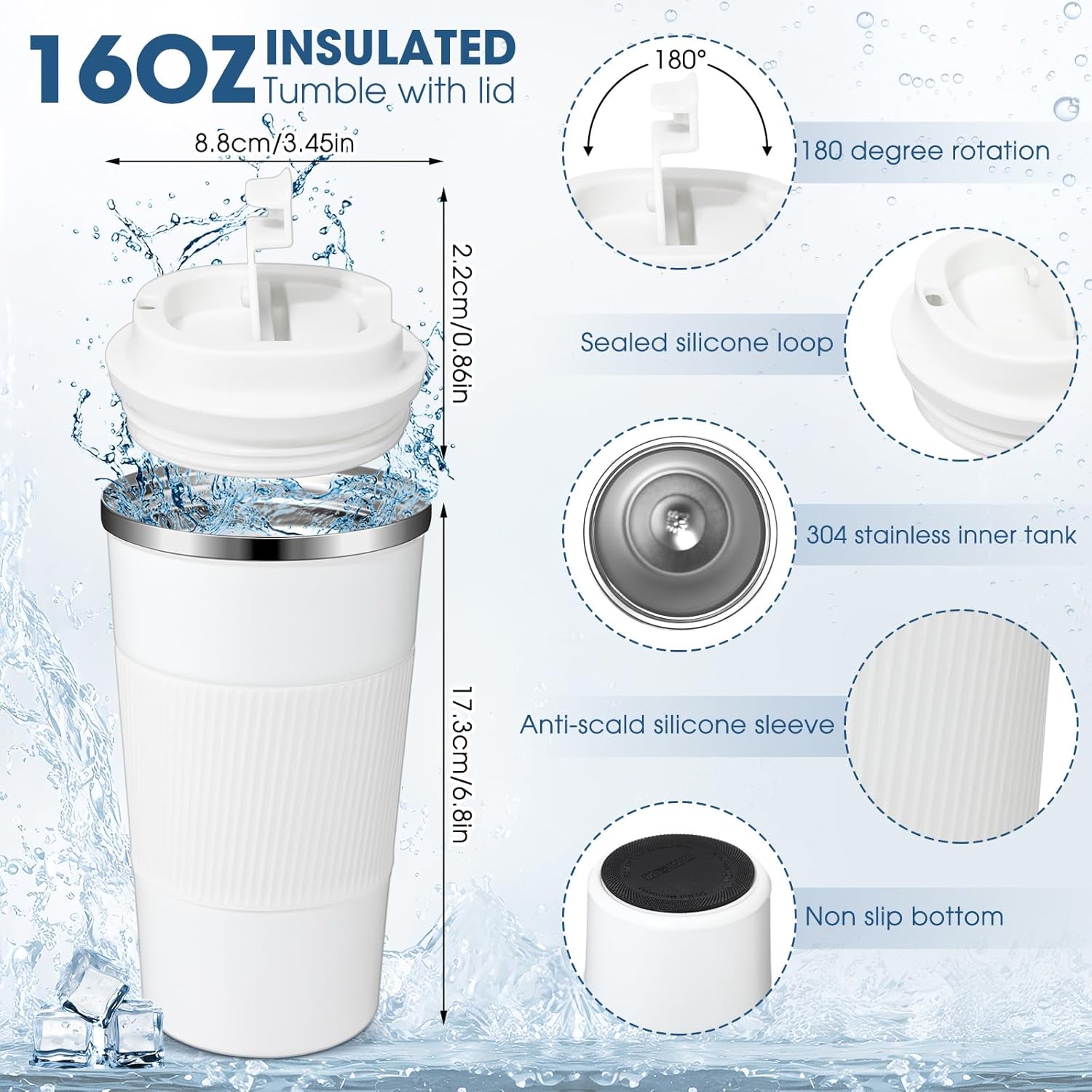 Sabary 4 Pack 16 oz Bulk Travel Coffee Mug with Lid Reusable Vacuum Insulated Coffee Tumbler Double Wall Thermal Stainless Steel Camping Tea Cup for Christmas Winter Drinks Employee Gift(White)