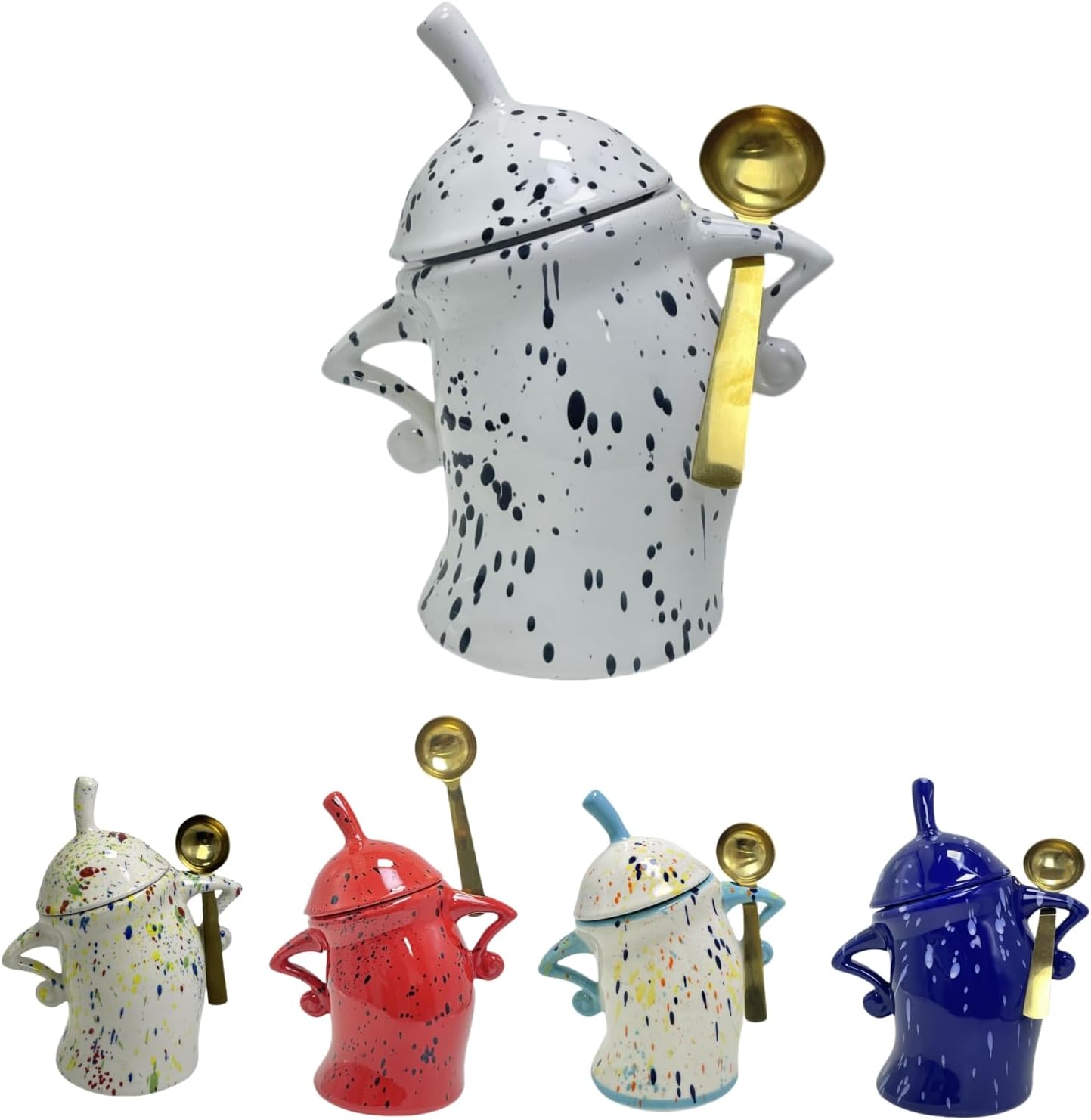 Canister With Attitude - 1.2L Ceramic Storage Jar with Lid, Airtight Kitchen Canisters Set for Coffee, Sugar & Tea | Farmhouse Flour Sugar Storage Container, Handmade with Spoon Rest (Black + White)