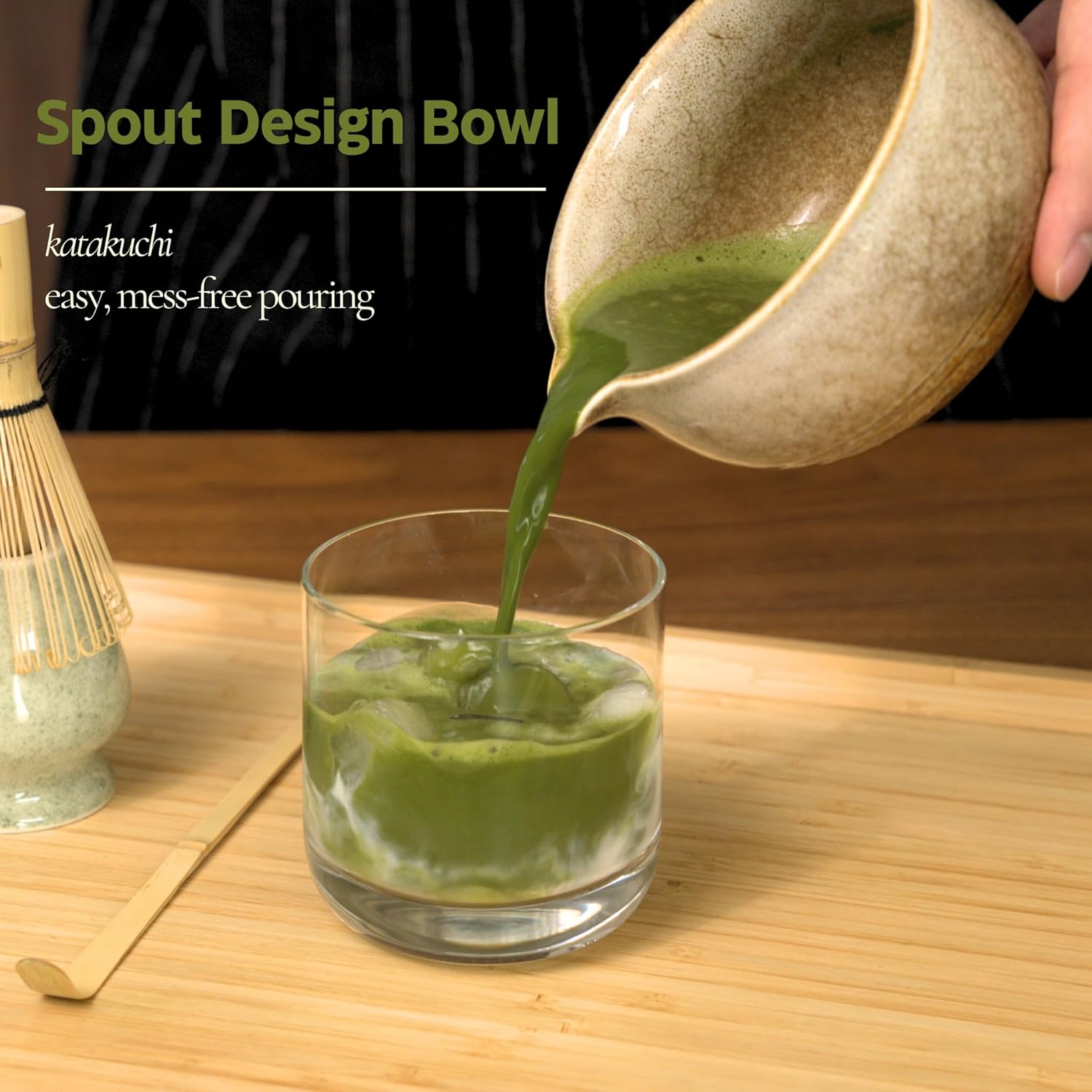 - âïžăCrafted for Quality & Comfortă The matcha bowl (chawan) is made from high-fired ceramic with a smooth glazed interior that resists stains and buildupâbeautiful, practical, and easy to clean. Itâs microwave and dishwasher safe for everyday convenience. The eagle-spout design offers clean, controlled pouring, while the 100-prong bamboo whisk (çŸæŹç«) whips up creamy, rich foam in seconds.