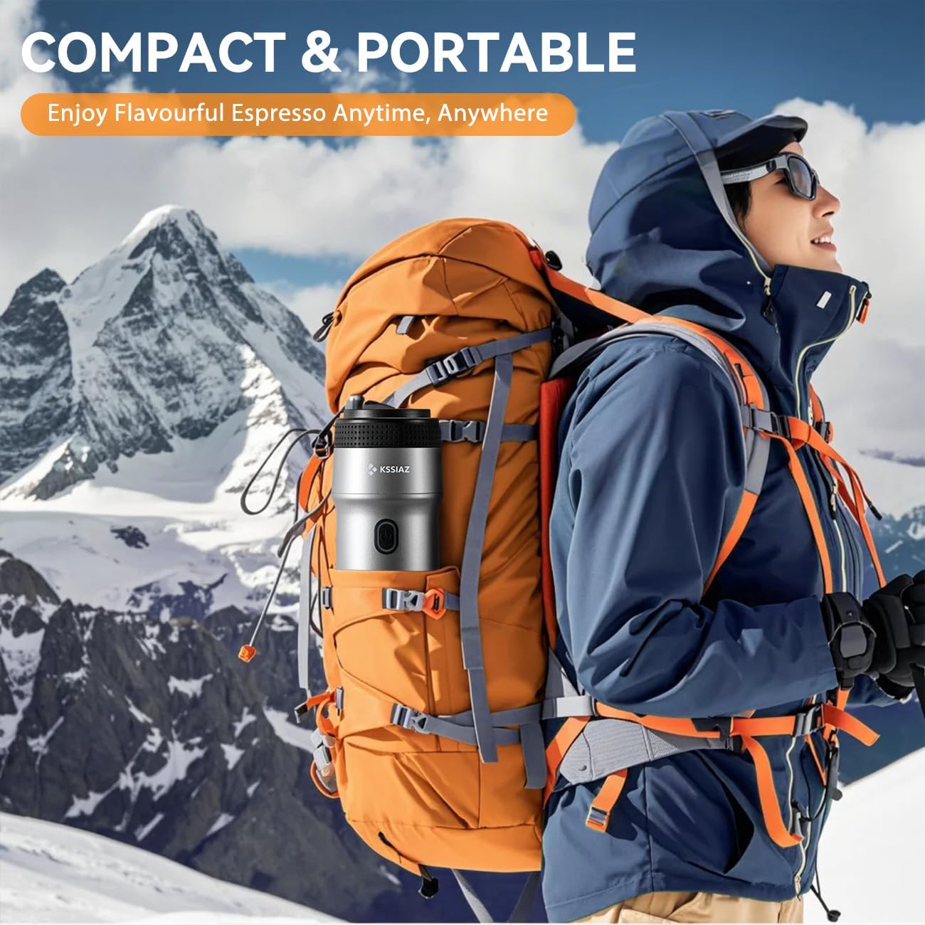 - 【Portable Design】With a compact design, the electric espresso maker weighs 2.4 lbs and is only the size of a water bottle. It is portable and perfect for camping, travelling and hiking. This coffee maker is compatible with 12V car charging, so you can charge it wherever you go