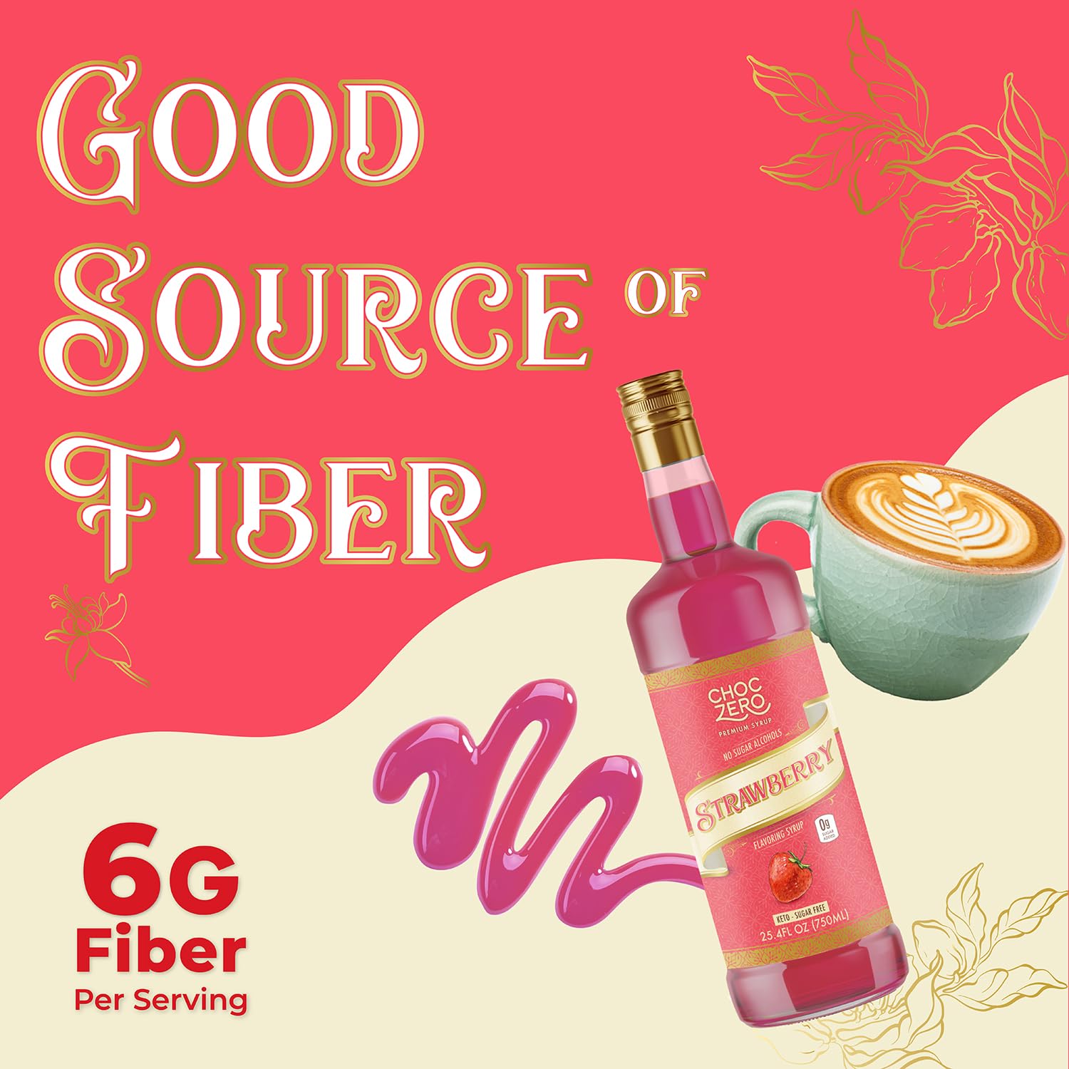ChocZero Flavoring Syrup, Strawberry Flavor, Sugar Free Syrup for Drinks, Keto Friendly, 25.4 Fluid Ounces