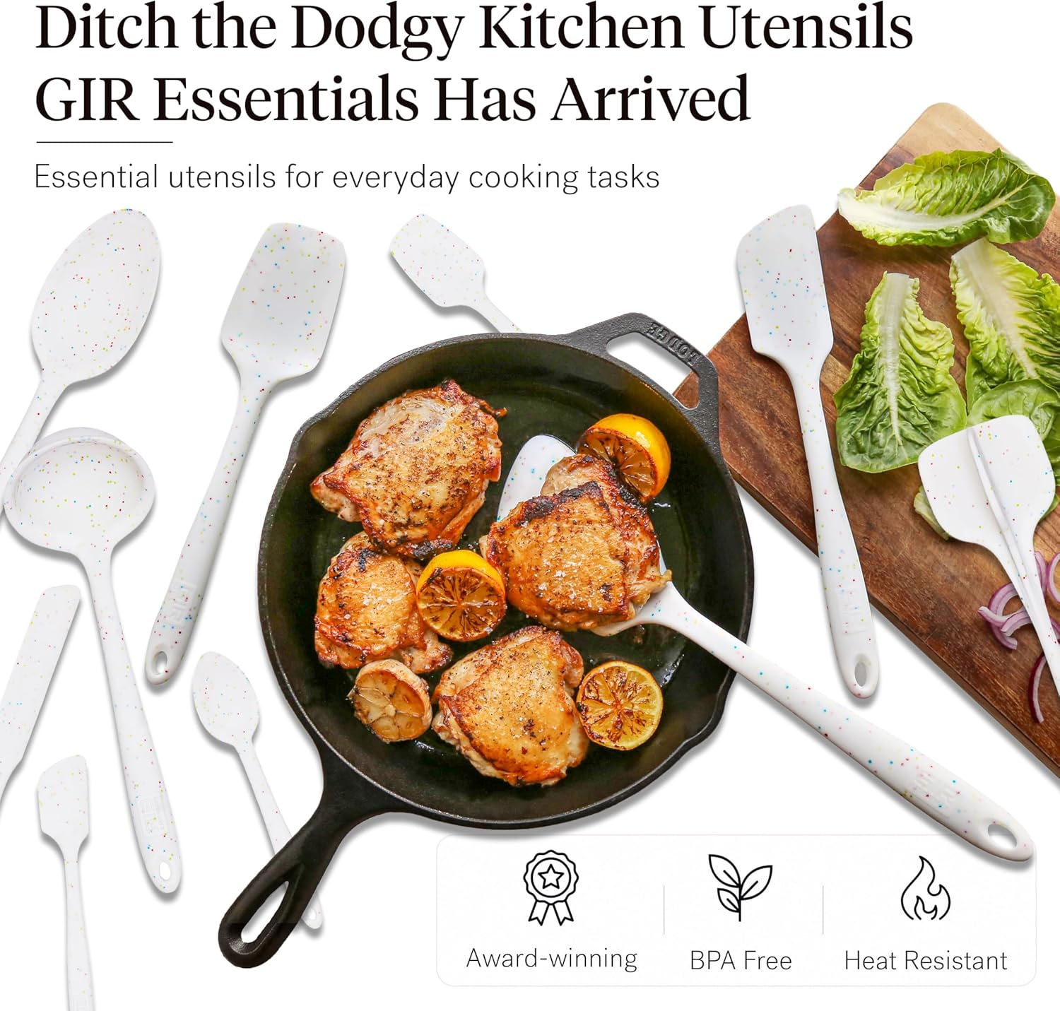 GIR: Get It Right 10 Piece Silicone Utensil Set - Ladle, Spatula, Flip, Spoon & Spoonula, Non-Stick, Heat Resistant, Dishwasher Safe, Silicone Kitchen Utensils, Baking Supplies