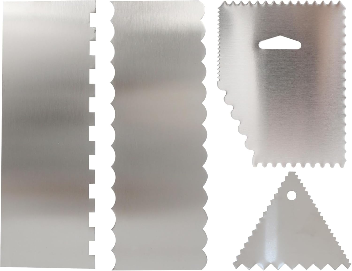 4 PCS Cake Scraper, Stainless Cake Smoother, Icing Smoother, Side Pattern Edge Stripes with Smooth Edges for Pastry Cutting and Mousse Cream Cake Decoration