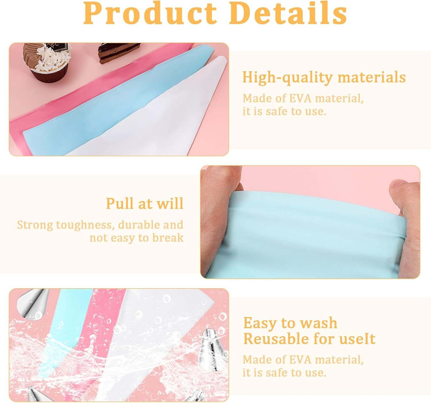 - 【Professional 24-Piece Decorating Set】Our premium reusable piping bags and tips set includes 24 stainless steel piping tips and durable piping bags to create endless decorating possibilities. Perfect for professional bakers and home enthusiasts alike, this comprehensive cake piping bags kit has everything you need for stunning desserts.