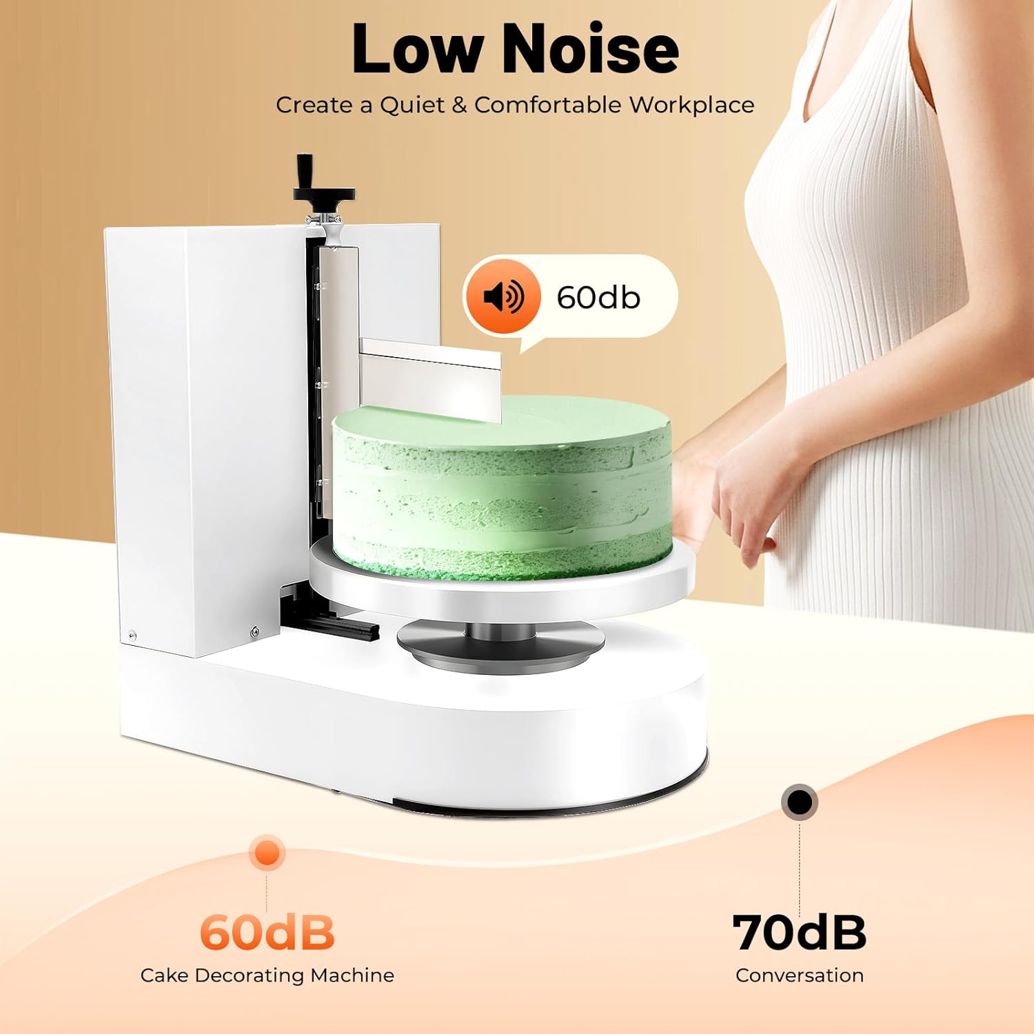 - 【Safe and Durable】This cake decorating machine has an iron frame combined with stainless steel components, which are spray-coated to resist corrosion and wear. The leakage protection plug and wide voltage (110-220V) design have double protection, and the thickened base is stable and anti-dumping. High-intensity operation is still safe and worry-free, extending the service life of the equipment.