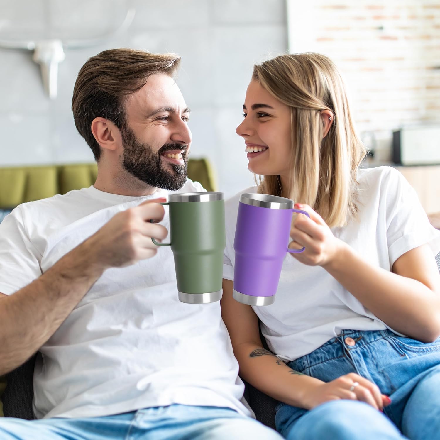 - Stainless Steel Tumblers with Handle: Crafted from thickened 304 stainless steel, this 20oz tumbler is rust-proof and odor-free, ensuring pure taste retention. The welded handle offers a secure, comfortable grip for daily use at home, work, or outdoors.