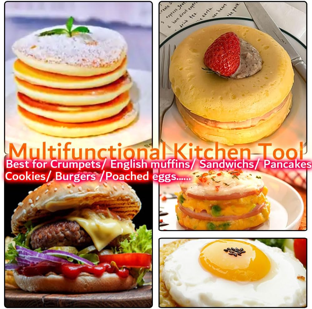 - ◖DOUBLE ROLLED EDGES Design for Easy Access◗ - Stainless steel crumpets rings are round shape with nicely double rolled edges, smooth touch for protecting your hands/pans from scratches. Each nonstick cookie ring is baked evenly for perfect rise, which can also be used to hold batter in place while on the baking pan or griddle.